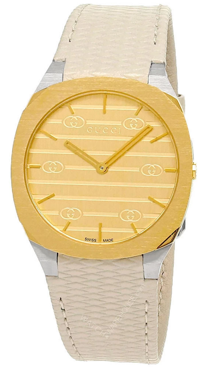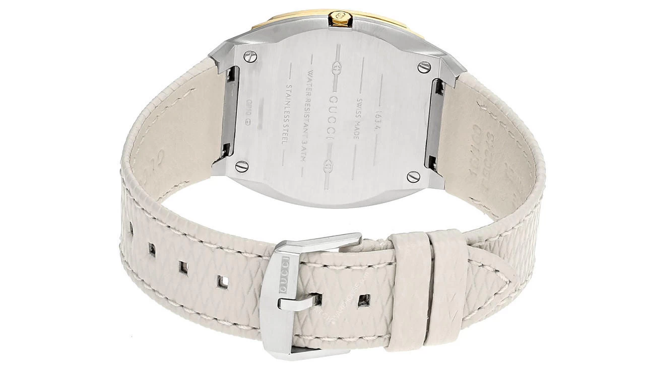 GUCCI 25H Quartz 34MM White Leather Strap Unisex Watch YA163416