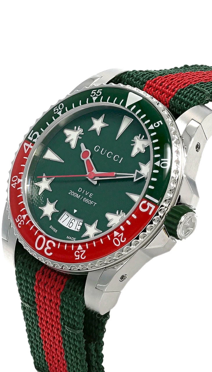 GUCCI Dive 45MM Quartz Green Dial Nylon Strap Men’s Watch YA136339Ā