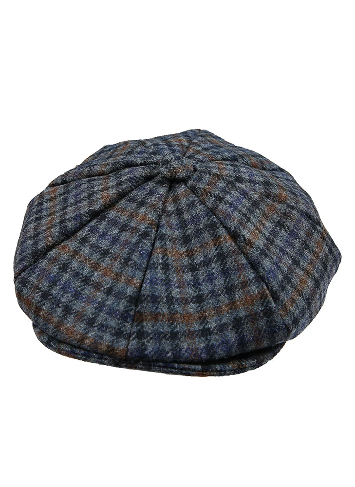 A timeless newsboy cap design showcasing stunning Yorkshire tweed from Abraham Moon.
