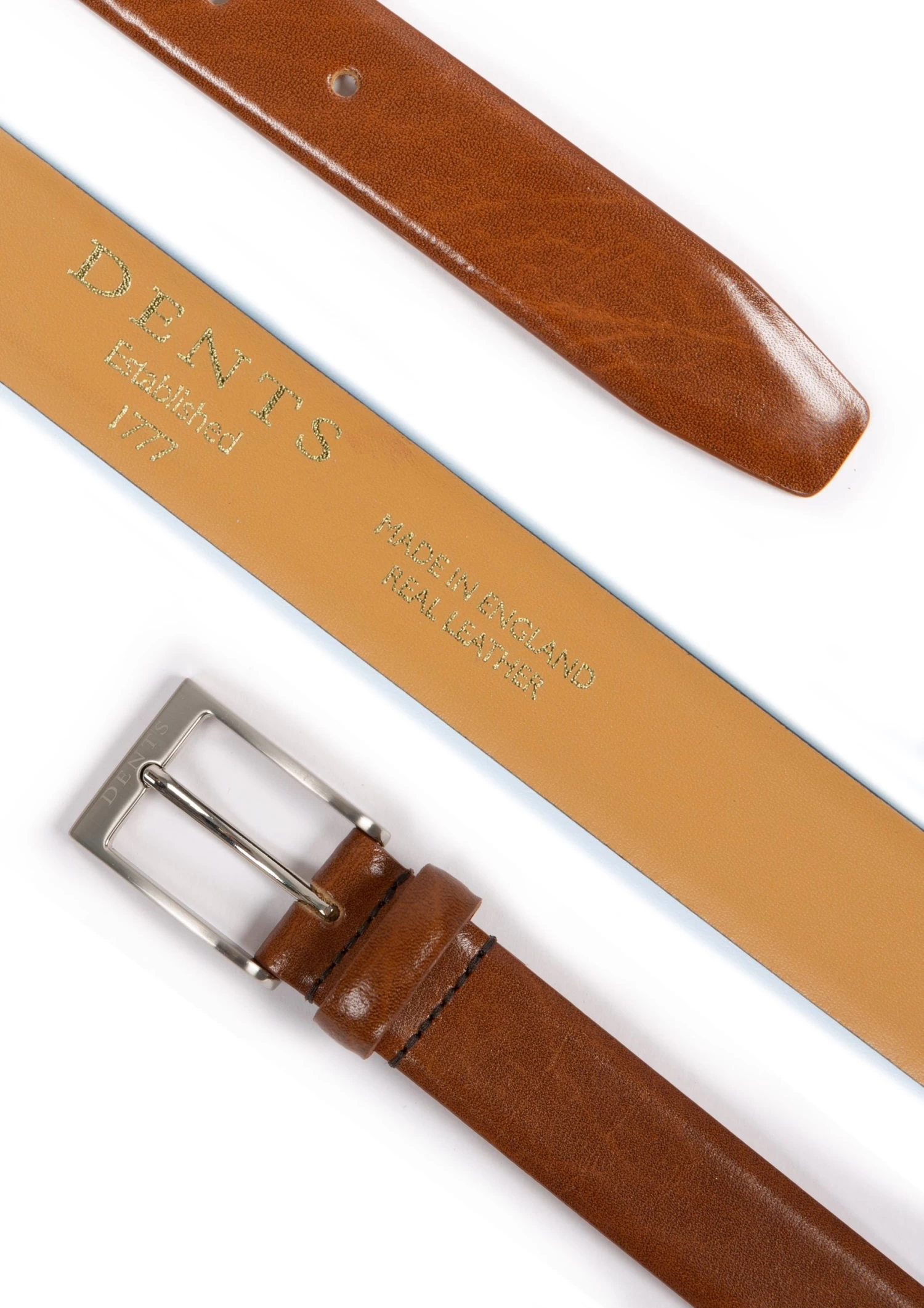 Add that finishing touch to any smart outfit with this timeless leather belt. Made in Britain using the finest full-grain leather, its gloss finish and slim width make it the perfect choice for formal attire.