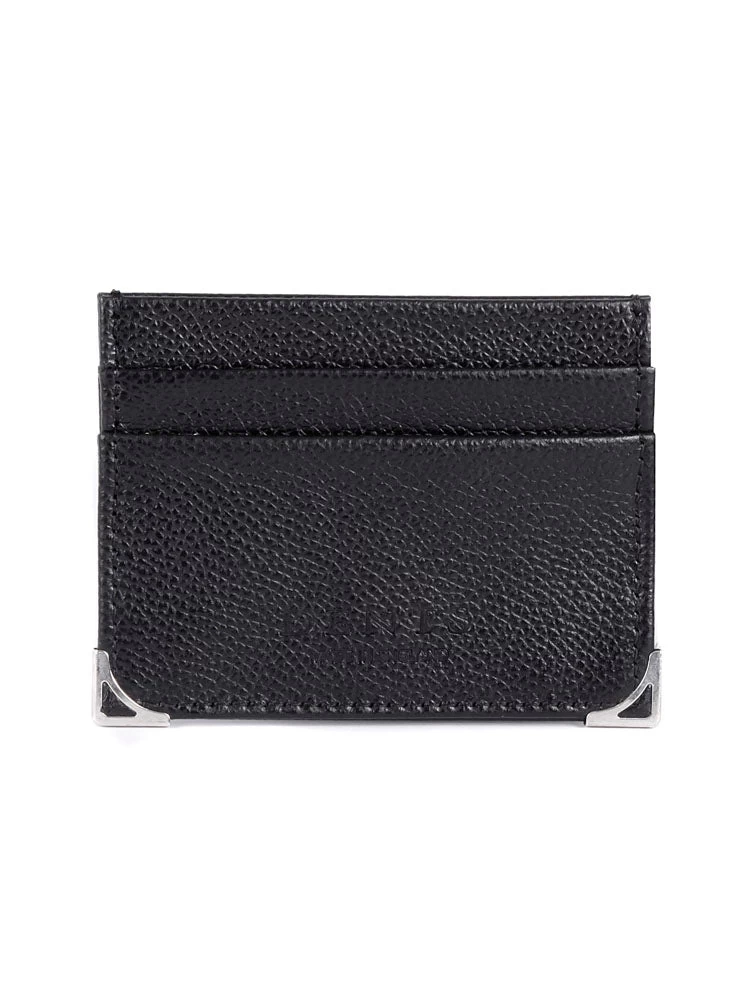 Keep your pockets streamlined with this clever, space-saving card holder. It’s double-sided design packs two card holders onto each side, giving you four slots in the space of just two. Boasting a stylish and hard-wearing pebble-grain finish and two gilt corners, this handmade card holder is a neat and discreet way to securely store important cards.