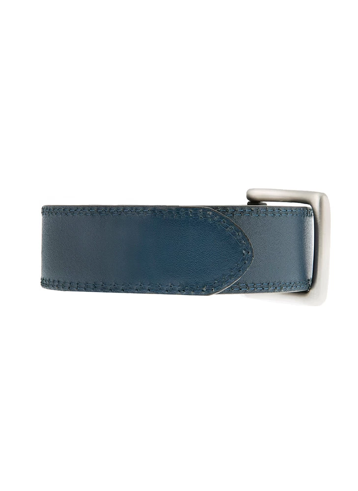 Our simple and sleek leather belt features an unexpected pop of colour with contrasting stitching for added detail.