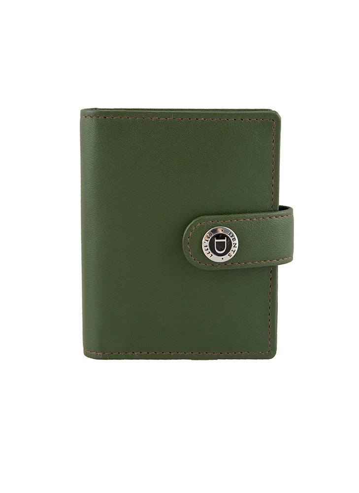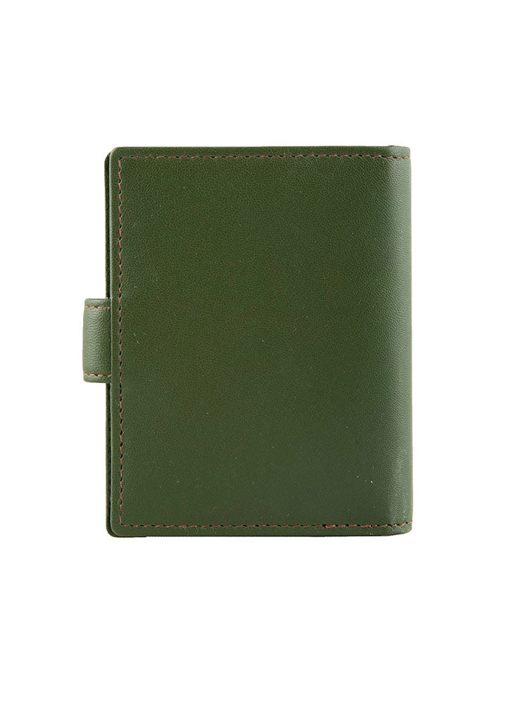 - Tab with shiny silver pressed stud clasps the cardholder together for a compact shape