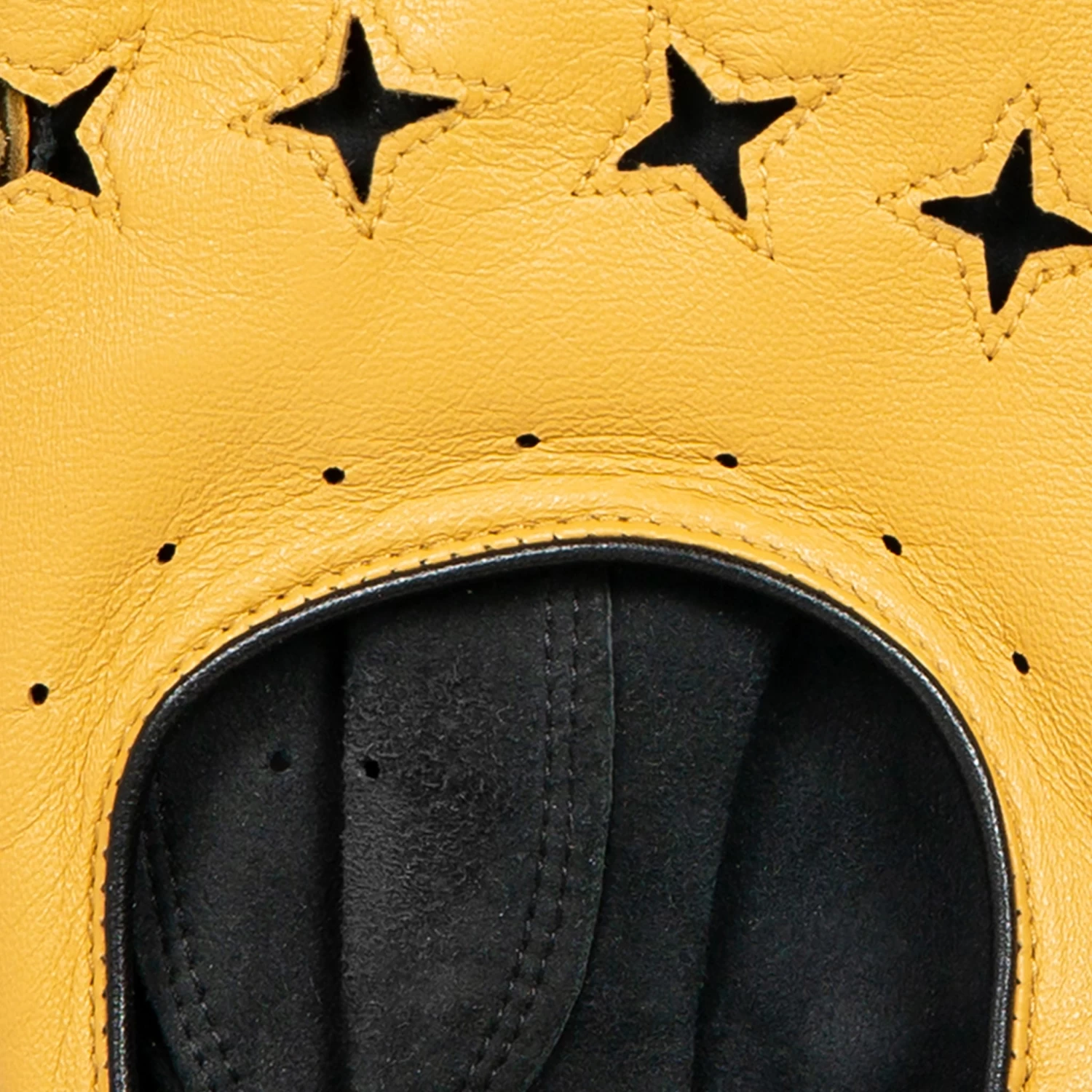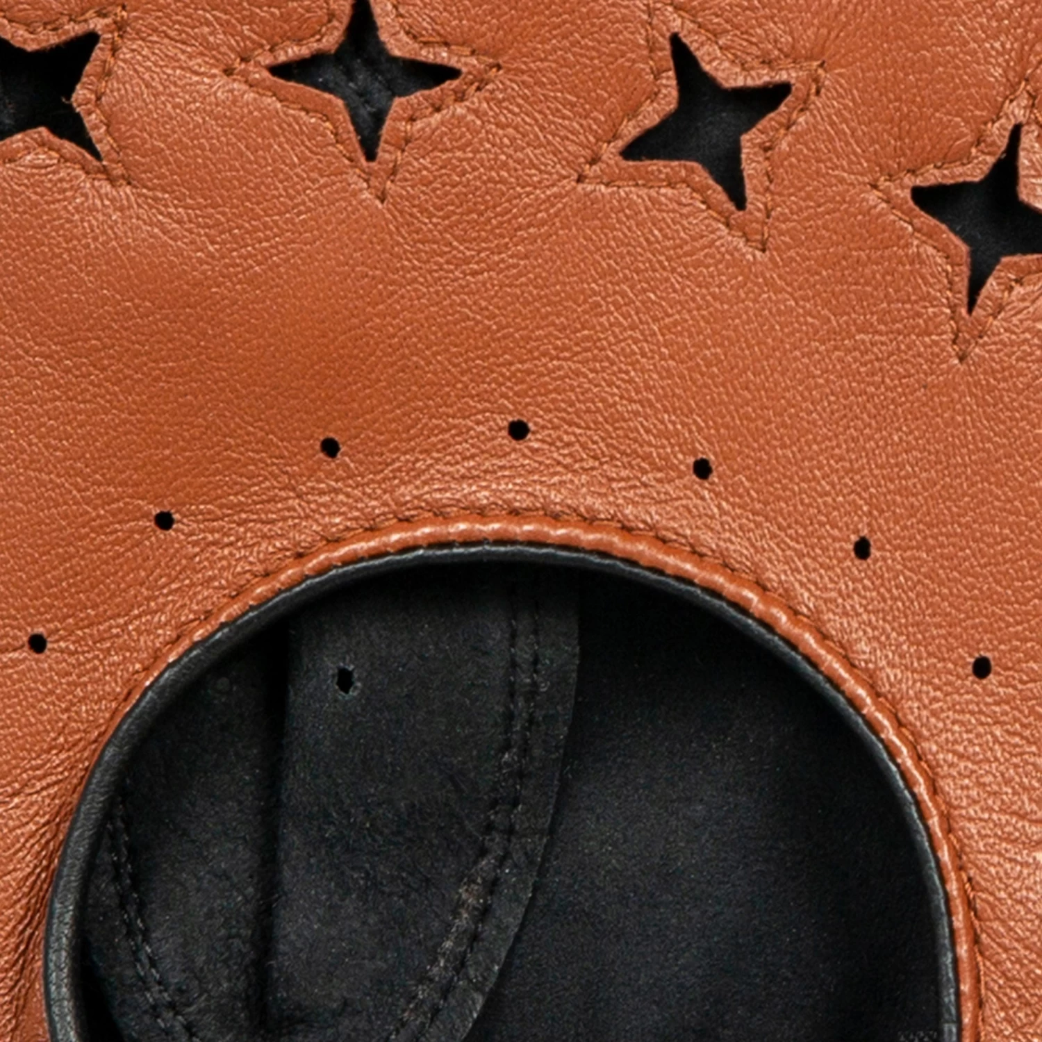 - Classic driving glove styling of cut-out back and perforated detailing with cross-shaped knuckle holes for a modern edge