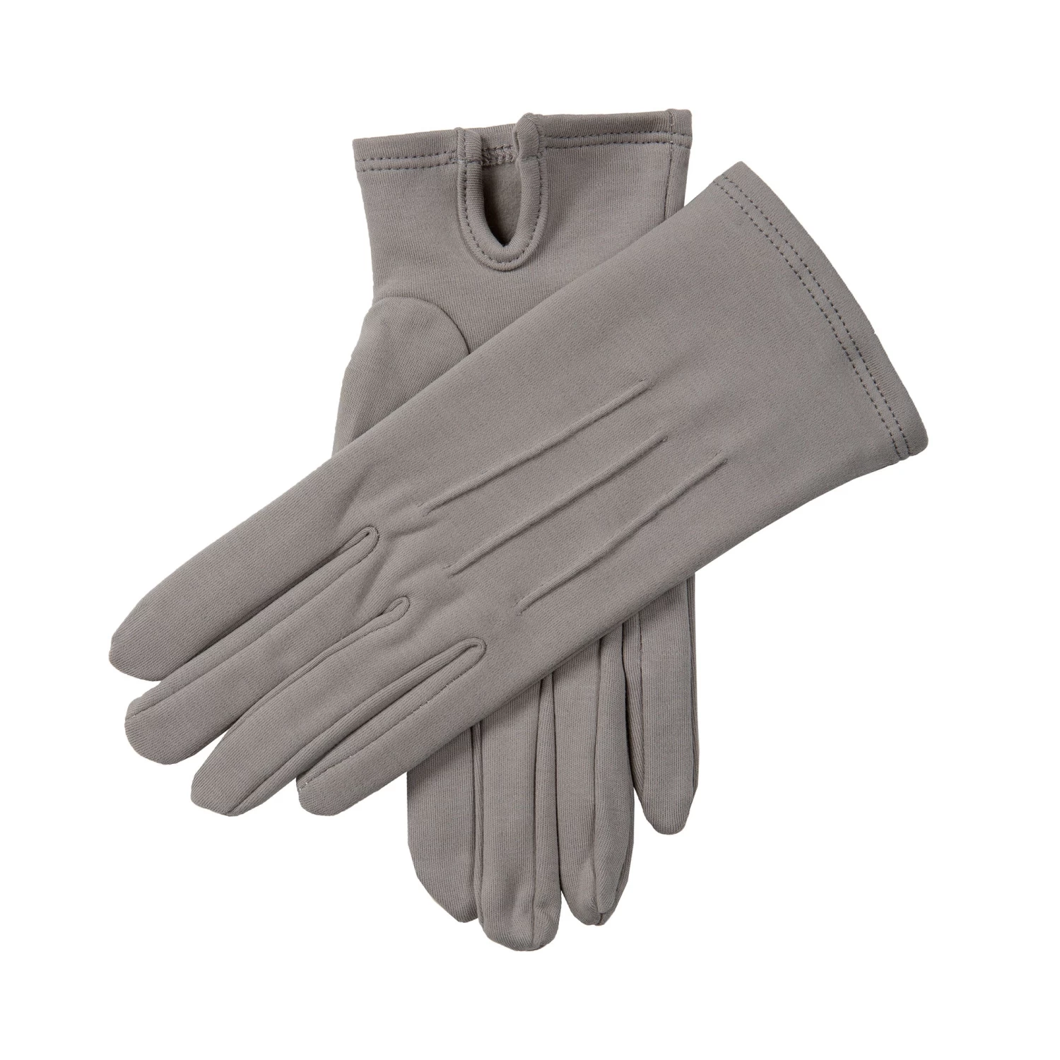 Add the finishing touch to your formal look with these refined grey gloves. They’re made from quality cotton with a gentle stretch of elastic for extra comfort and flexibility. The points stitching on the back of the glove adds a classic touch, making these gloves the perfect pair for formal ceremonies and other special occasions.
