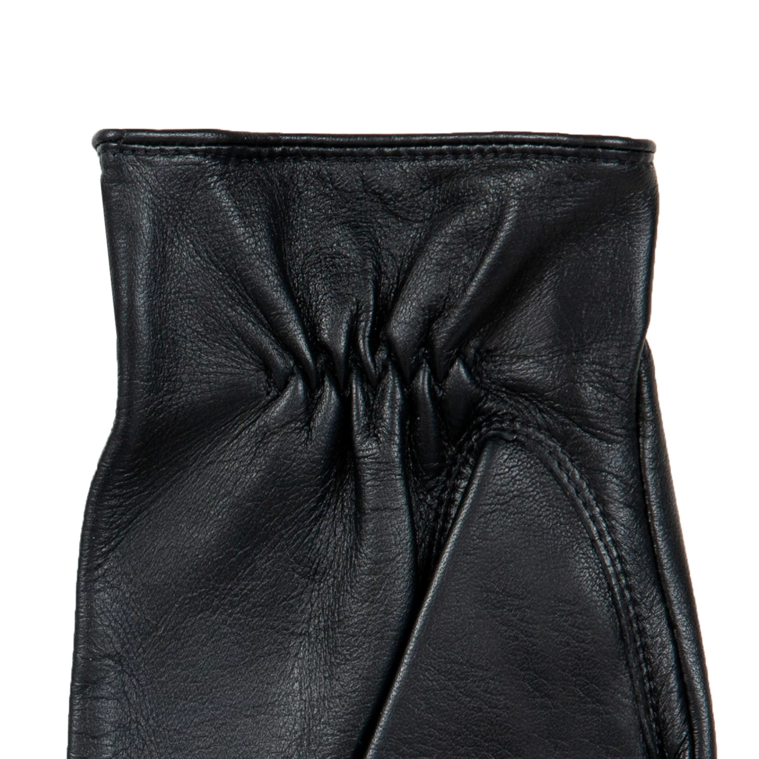 - Three-point decorative stitching on the back of the gloves elongates the look of the hand for a refined appearance