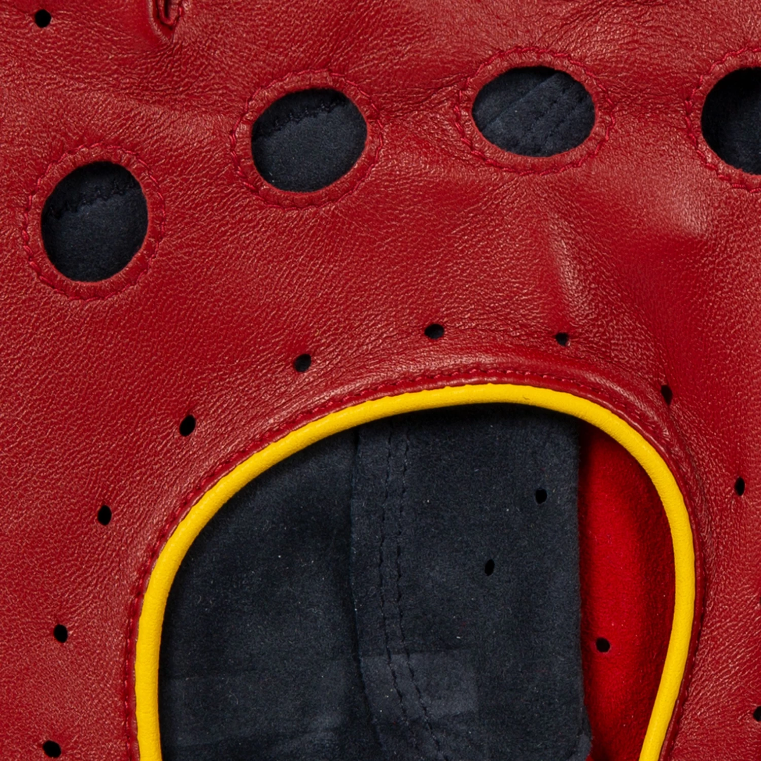 Strap in for our most colourful driving glove ever, introducing Grand Prix. Inspired by the flamboyant colours of classic motor racing teams, these distinctive driving gloves boast three different colours. One on the palm and strap, the second on the back of the glove and the third has an eye-catching cameo neatly trimming the keyhole back. With all the delicate detailing of driving gloves, these gloves also feature touchscreen technology making them mobile phone friendly. An online exclusive, these gloves are perfect for motorsport lovers, stylish drivers looking to coordinate with their car or trendsetting gents who love to stand out from the crowd. A truly colourful classic in the making.