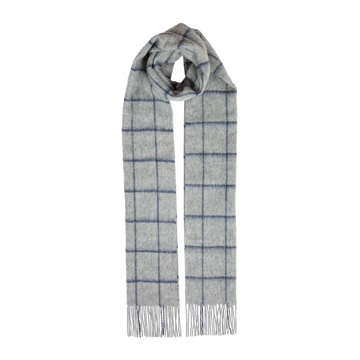 Wrap yourself in luxurious comfort thanks to this lambswool scarf. Made using wool from the shearing of young sheep, this high-quality yarn is super-soft and great for regulating body heat – so you won’t get too warm when wearing. The scarf features a window pane check design that evokes a vintage flavour befitting all well-dressed gentlemen. Pair with smaller scale patterns to give this stylish scarf centre stage.