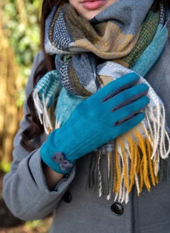 Women’s Touchscreen Velour-Lined Faux Suede Gloves With Faux Fur Cuffs