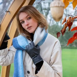 Womenâs Wool-Lined Leather Gloves With Quilted Cuffs And Bow