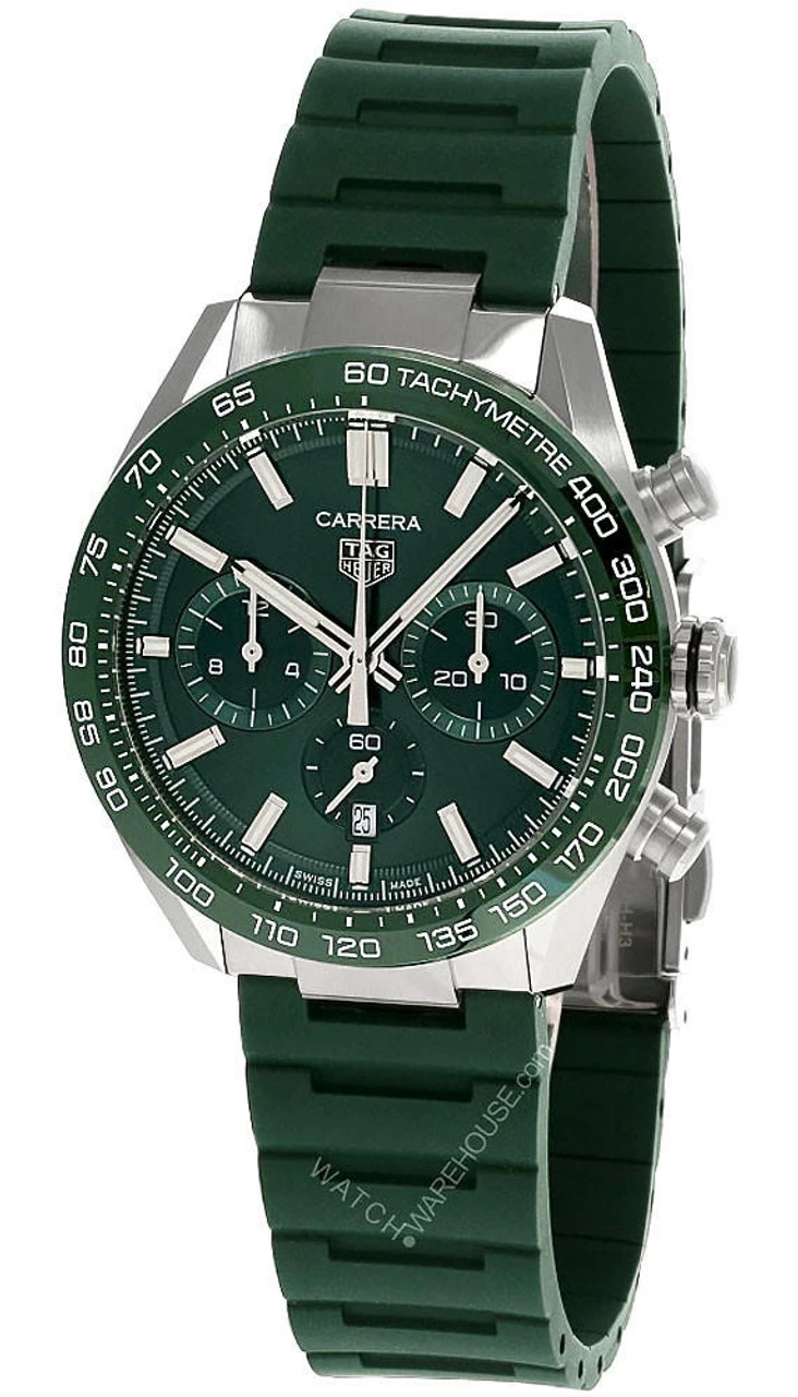 TAG HEUER Carrera AUTO 44MM Green Dial Rubber Men’s Watch CBN2A1N.FT6238