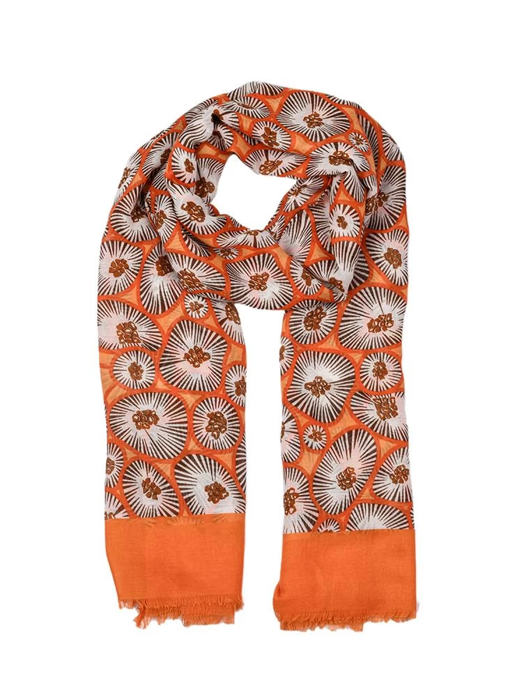 Dial up the drama this spring with our vibrant circle print scarf. The eye-catching pattern features abstract circles squashed together in a design that combines retro chic with modern attitude, creating something unique and intriguing. This unusual fashion fusion is offered in pumpkin orange and is finished with block colour ends, creating a true statement piece for your summer wardrobe.