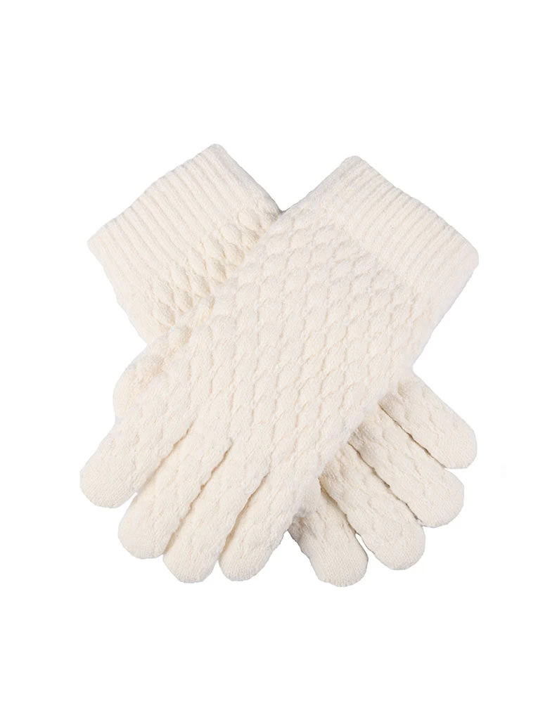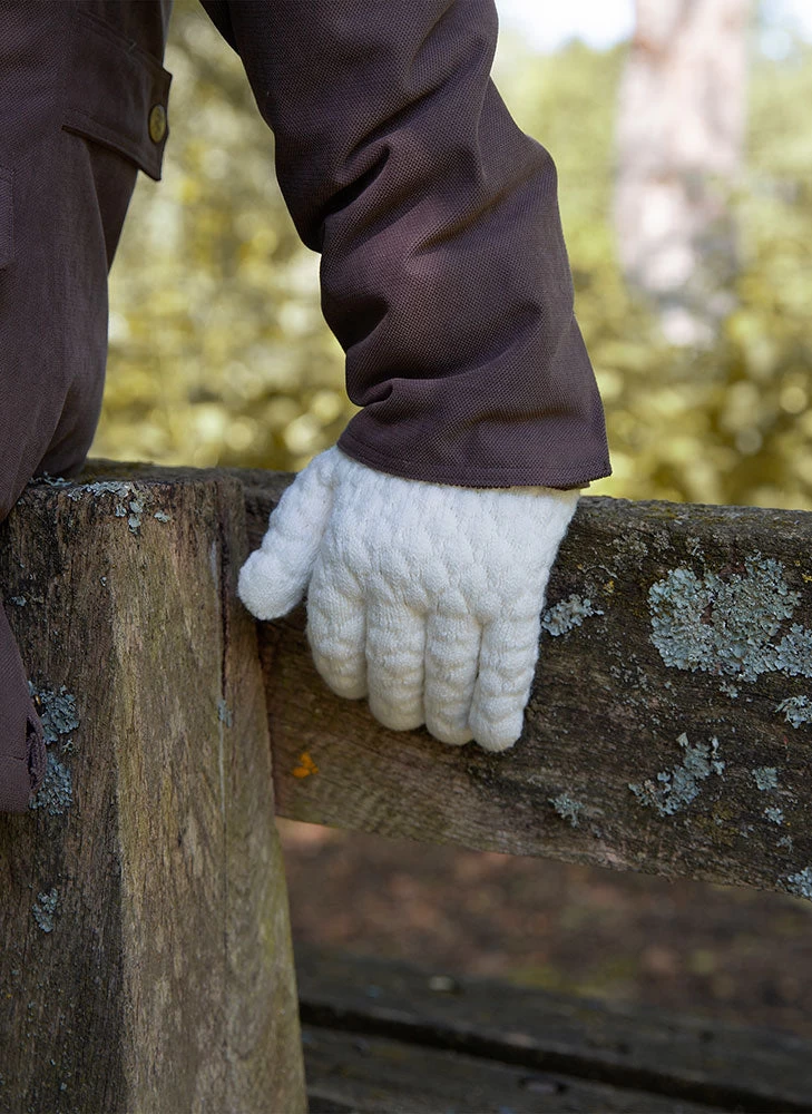 Our bubble texture knit glove is perfect for snowy winter days. They are lined with a soft feather yarn and finished with a ribbed cuff.