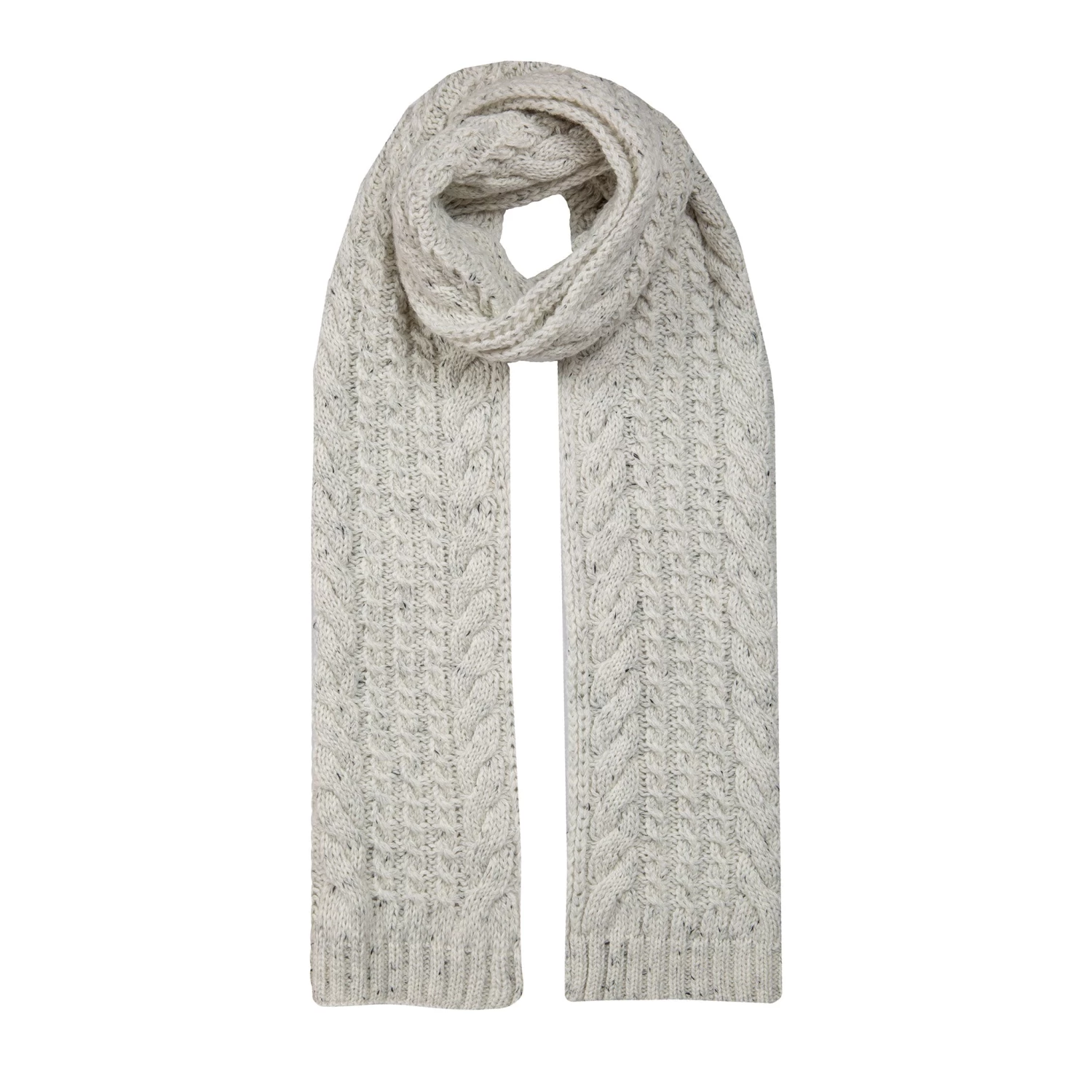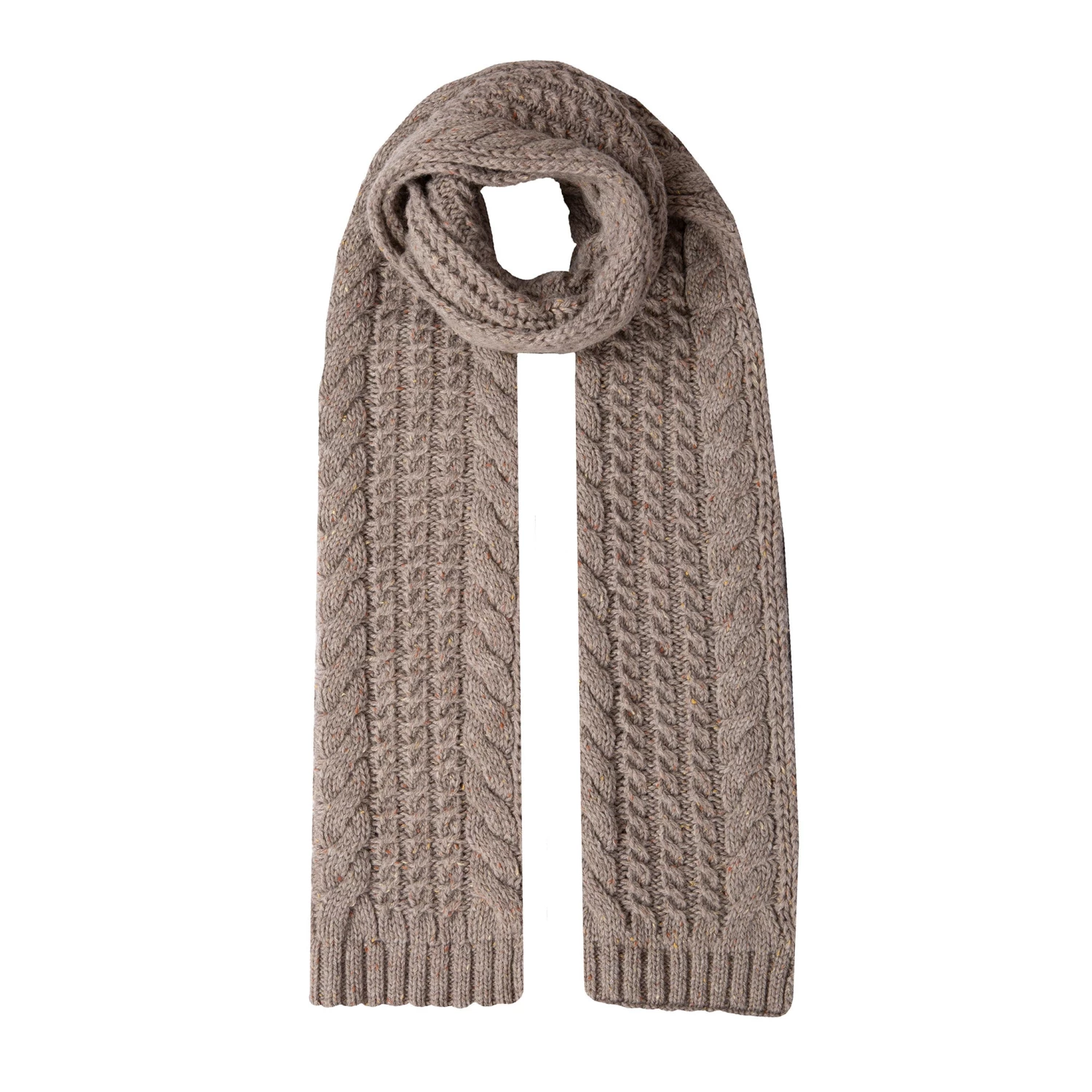 Add some classic cosiness to your winter wardrobe with our cable knitted scarf. The timeless pattern of crossing layers is beautifully highlighted by the flecked yarn, reminiscent of Donegal wool. These subtle speckles add depth to the design, and with a choice of five classy colours there’s sure to be a shade to suit your seasonal style. This snuggly scarf is made from a wool blend delivering cosy comfort and cold weather warmth and has a chunky ribbed hem for a neat finish. Look for the coordinating gloves to create a seamless outdoor ensemble.