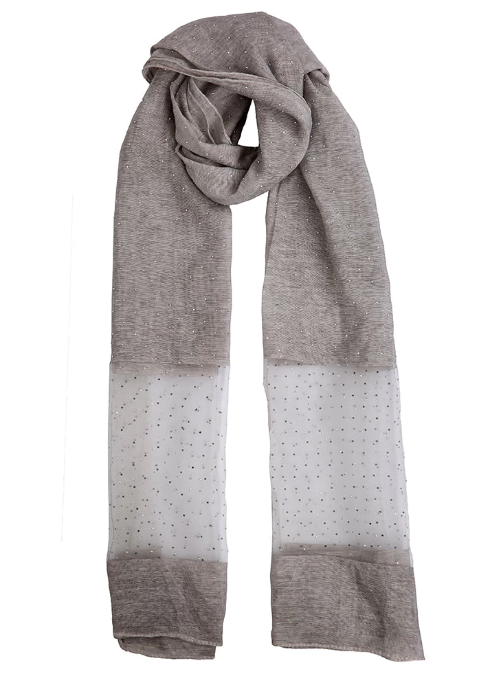 This silver sheer scarf is embellished with an intricate diamante design. This gorgeous accessory is the perfect way to uplift and add a touch of sparkle to any outfit.