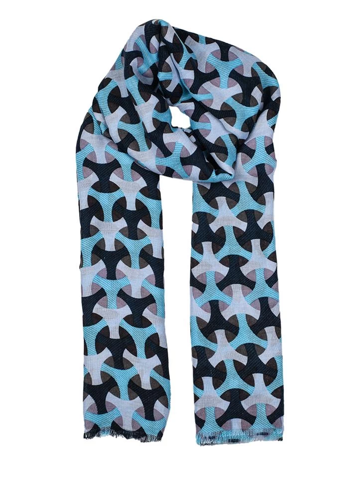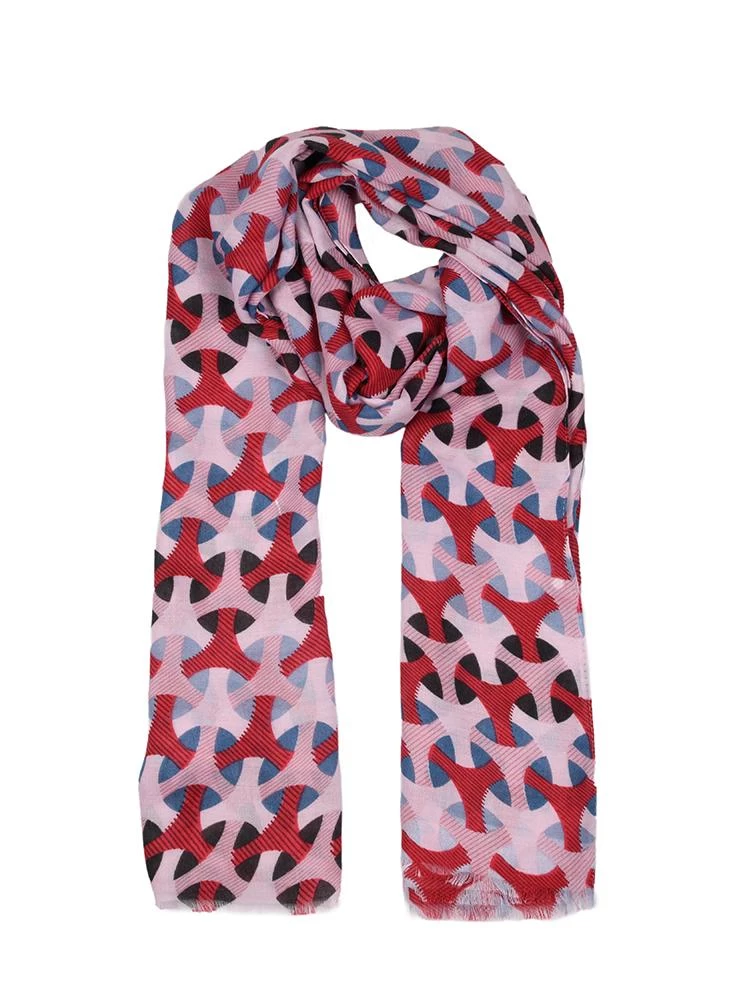 Stand out from the crowds this spring with a statement print. Introducing our geometric-pattern scarf. This summer stunner works the hot trend for geometric shapes with a repeat pattern of interlocking cut-out circles. Choose from two instantly-wearable colours – blue to cool things down or pink to turn up the heat. With raw edges and a fine weave for a textural touch, this lightweight scarf is ideal to add colour and interest to any summer outfit.