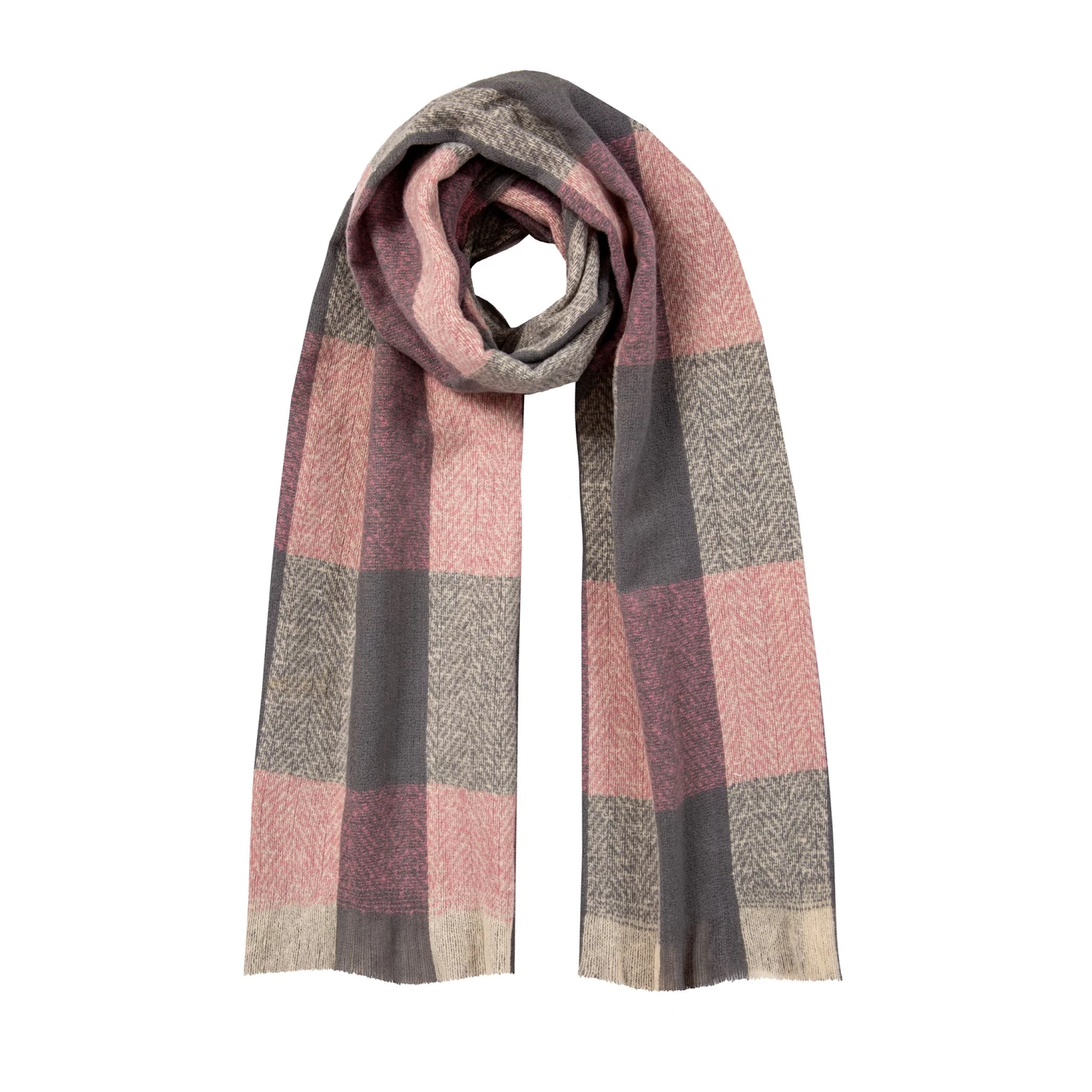 Enjoy two classic styles in one chic scarf, introducing our herringbone check scarf. It features a traditional check pattern of criss-crossing colours, but look closely and you’ll also spot a subtle herringbone pattern within some of the blocks. These understated chevrons add a dose of vintage style creating a winter warmer rich with charming elegance. The scarf is available in powder pink and dove grey – a perfect pairing of warm and cool tones. This colour combination complements classic and contemporary looks, ready to style with ease. The scarf is finished with fine yarn tassels – a delicate trim for a distinctive scarf.