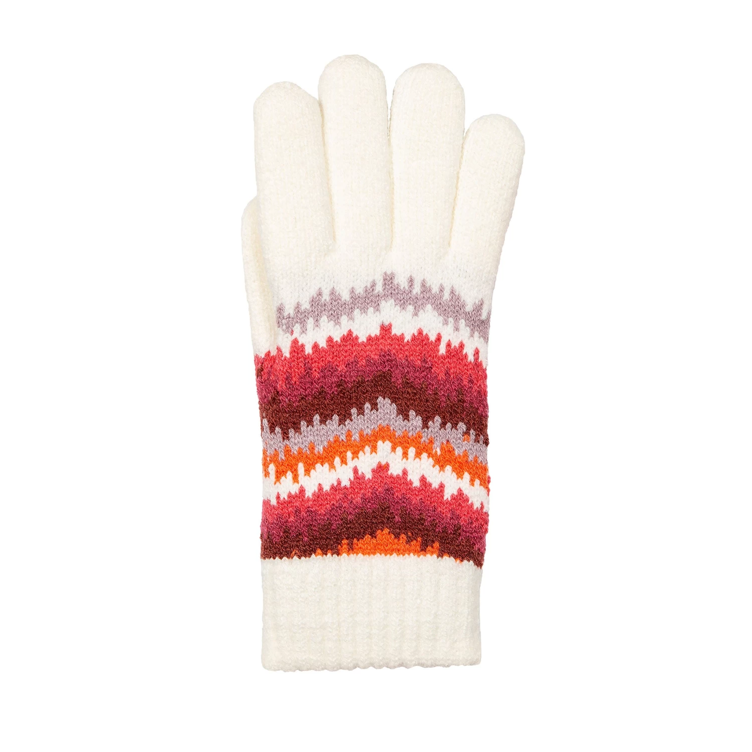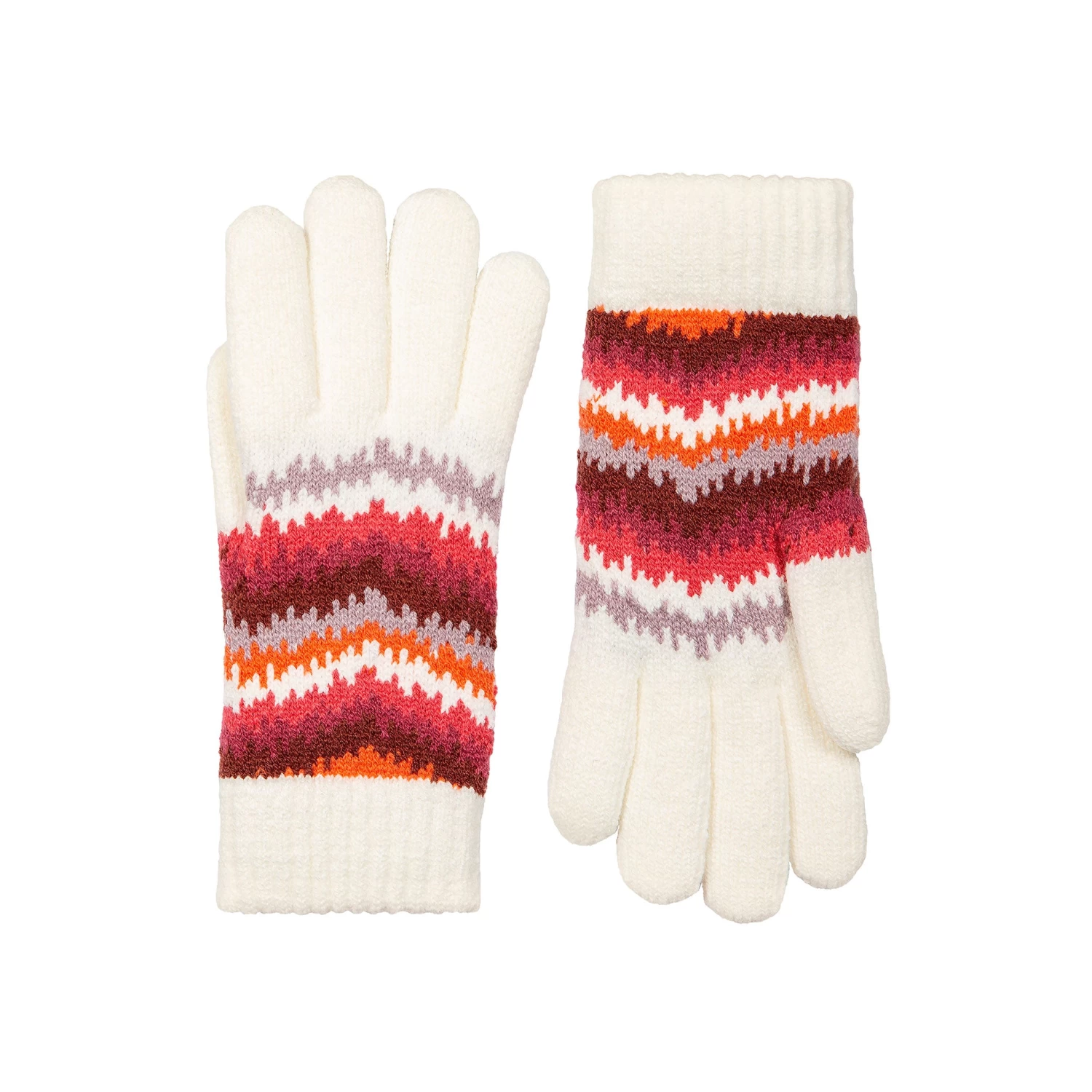 Spice up your winter wardrobe thanks to our knitted gloves with sizzling stripes. Offered in a classic winter white, it’s the irregular stripes that catch the eye in a vivid mix of warm and cool shades. There’s hot pink and zesty orange turning up the temperature; pretty lavender and classic grey calm things down, while deep purple and earthy brown add a quiet richness. The design is instantly alluring and is a fun, modern spin on traditional stripes. The gloves are super cosy and comforting, the extra lining of feather-soft yarn certain to keep hands warm in winter. Pair with the matching hat and scarf for full-on stripey style, or wear alone and simply let the gloves steal the spotlight.