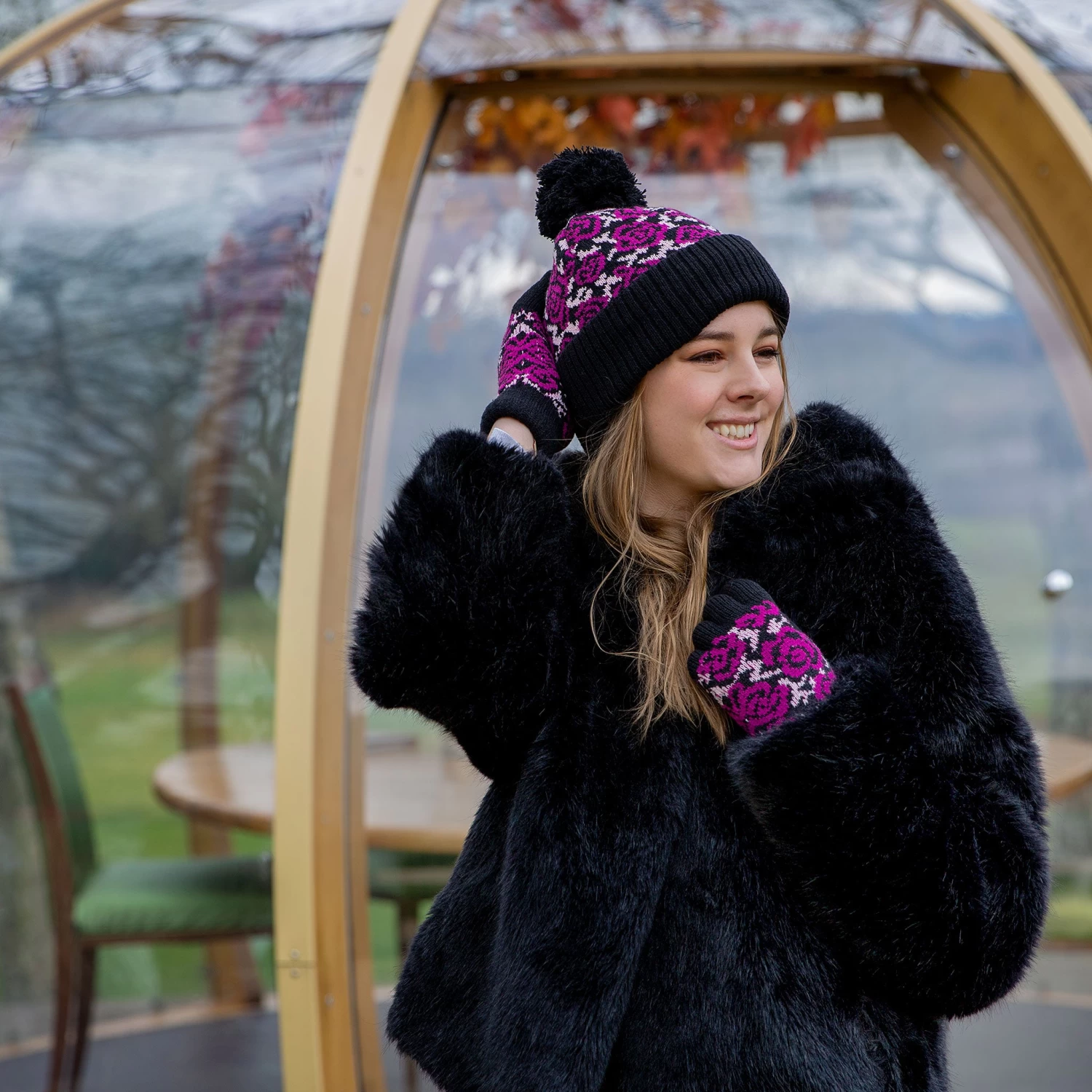Help your outdoor look bloom this winter with our floral knitted gloves. Boasting an elegant rose design, these knitted gloves are just the thing to add some garden glory to your cold weather wardrobe. And they’re just as cosy as they are classy, boasting our signature feather-soft lining for superior snugness. Choose from three stunning shades – teal, dove grey and black – and finish with the matching hat for a fabulously floral style.