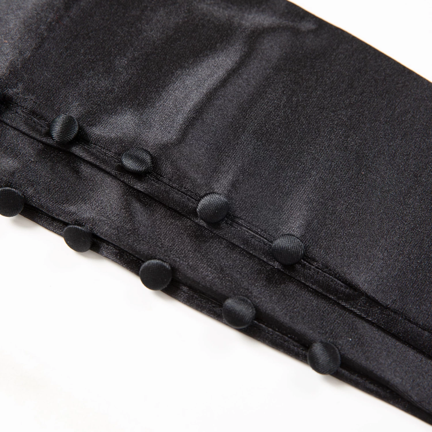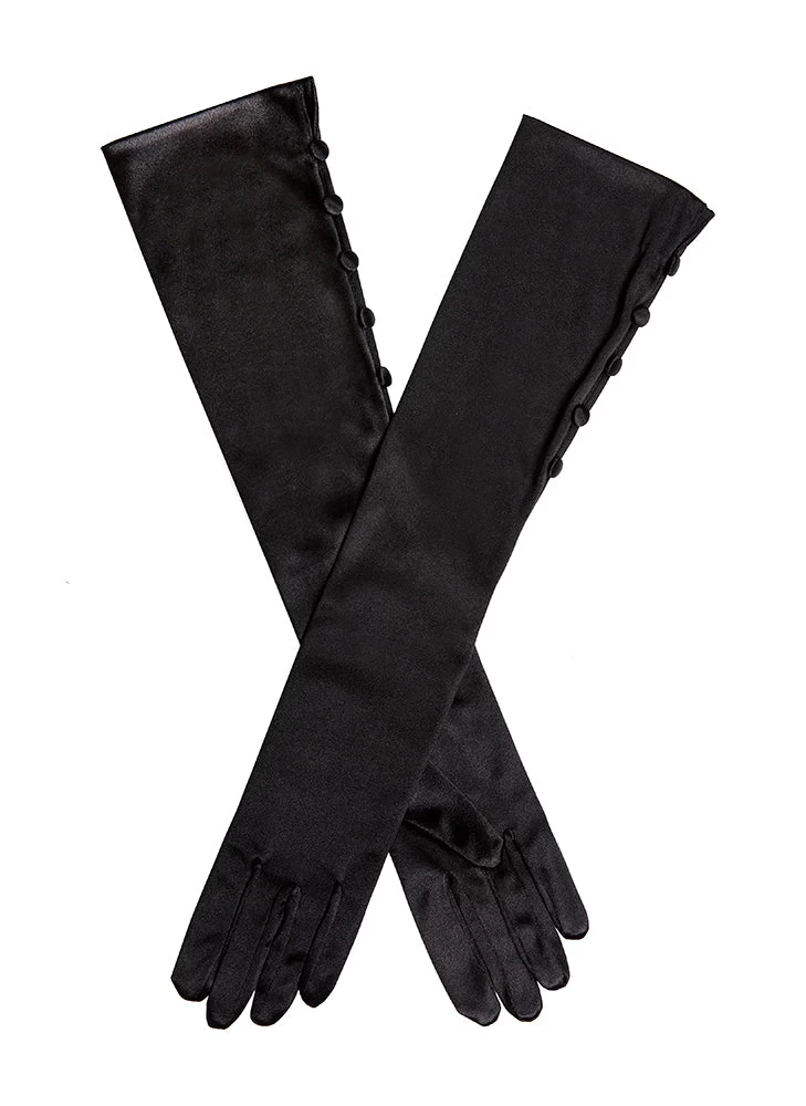 Bring some vintage elegance to your evening wear courtesy of our buttoned satin gloves. These occasion gloves measure just below the elbow, with the tops of the gloves decorated with five satin-covered buttons. This delicate detailing evokes an old-school feel, making these statement satin gloves the perfect choice for smart events like weddings, balls and black tie dinners. Comfortable thanks to side vents and a light stretch in the fabric, pull on these evening gloves and enjoy effortless glamour.
