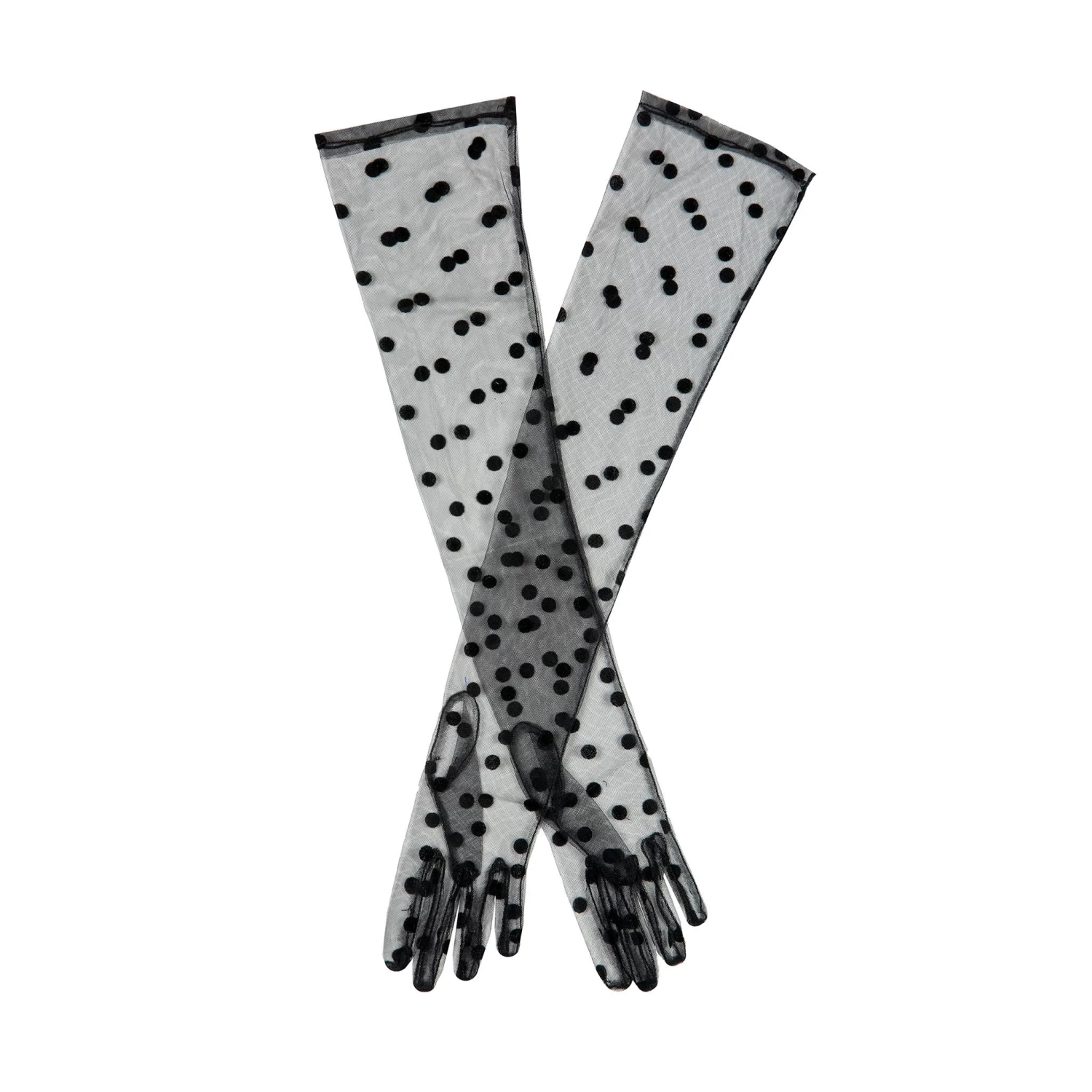Find your style sweet spot with Lila, our long tulle gloves. Tulle is a fantastic choice for statement evening gloves. The fine netting is delicate for instant refinement, brings a soft suggestion of colour while also being sheer for see-through sensuality. Our Lila gloves are further elevated by the cute spotty design which adds a timeless, vintage-feel. And being opera gloves, they extend to your upper arms for fantastic coverage that exudes old-school glamour. Choose from elegant ivory for daytime events and weddings or classic black for balls and parties. A special cocktail of true elegance and flirty fun ready to dazzle whenever you are.