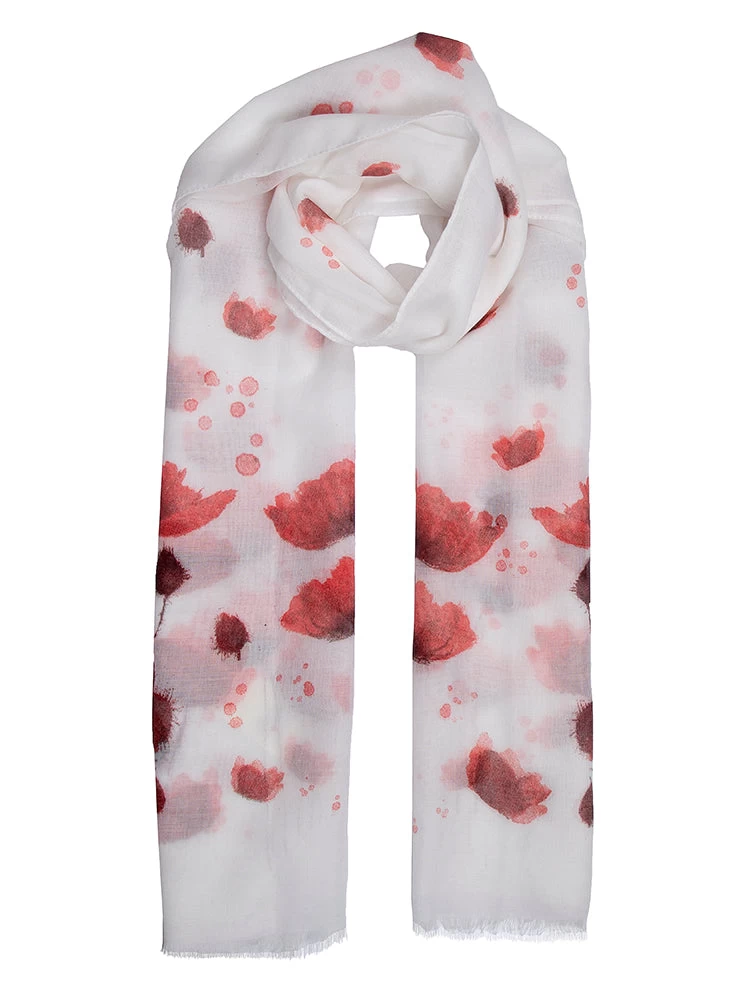 A beautiful, watercolour print of poppies steals the show on this soft pale pink scarf.