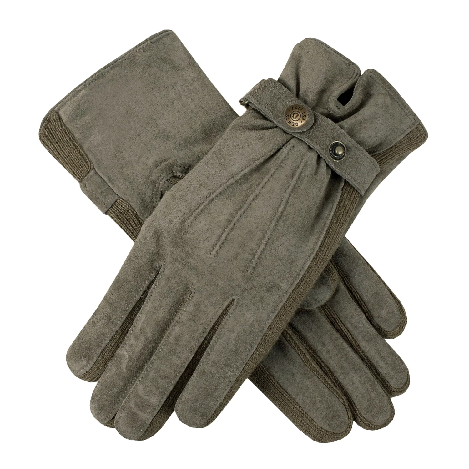 Enjoy exceptional comfort and style everyday with our casual suede gloves. Made using the finest and silkiest pig suede for a super-soft feel and distinctive look, these gloves offer extra stretch and flexibility thanks to the knitted sidewalls. The cosy comfort doesnât stop there as the gloves are lined with fleece to keep your hands toasty and warm and in a checked design for extra style. Further design details include three-point stitching, strap and roller fastening and back vents to create gloves ideal for country strolls.