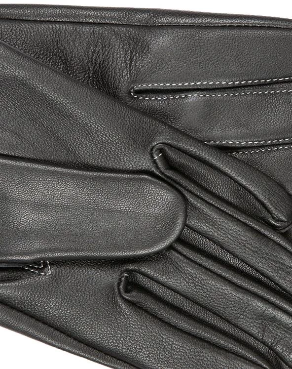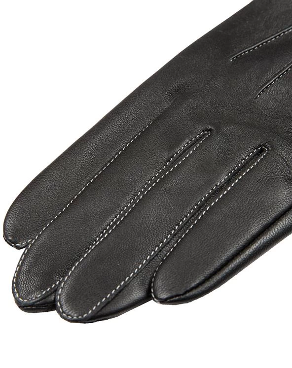 - Three-point decorative stitching on the back of the gloves elongates the look of the hand for a refined appearance