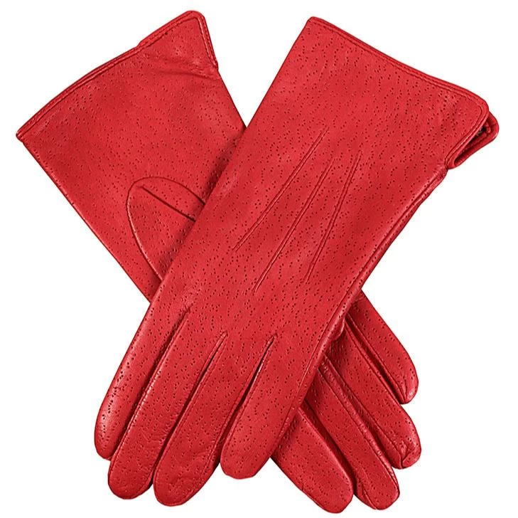 Love the look of peccary leather gloves? Introducing our innovative imitation peccary leather gloves, Jessica. Peccary is the worldâs rarest and most luxurious leather, and so weâve crafted an everyday alternative. Our âimipecâ leather replicates the distinctive markings of peccary but is made from finest hairsheep leather which is itself incredibly soft and supple. Ready for cold weather thanks to a cosy, knitted lining and finished with elegant three-point stitching, these gloves are certain to be enjoyed for years to come.