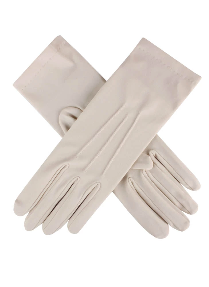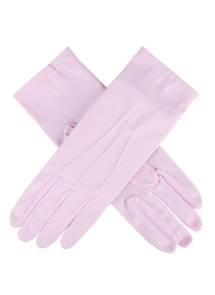 Enjoy the silkiness smoothness of satin without the sheen. Introducing our matt satin evening gloves. These occasion gloves have a more muted shine – perfect for those looking for something less glossy than standard satin. Instead, there is decorative three-point stitching for classic elegance and offered in a splendid selection of shades to let the colour take centre stage. Short in length, these satin gloves are a fun way to add a pop of personality to your formal look.