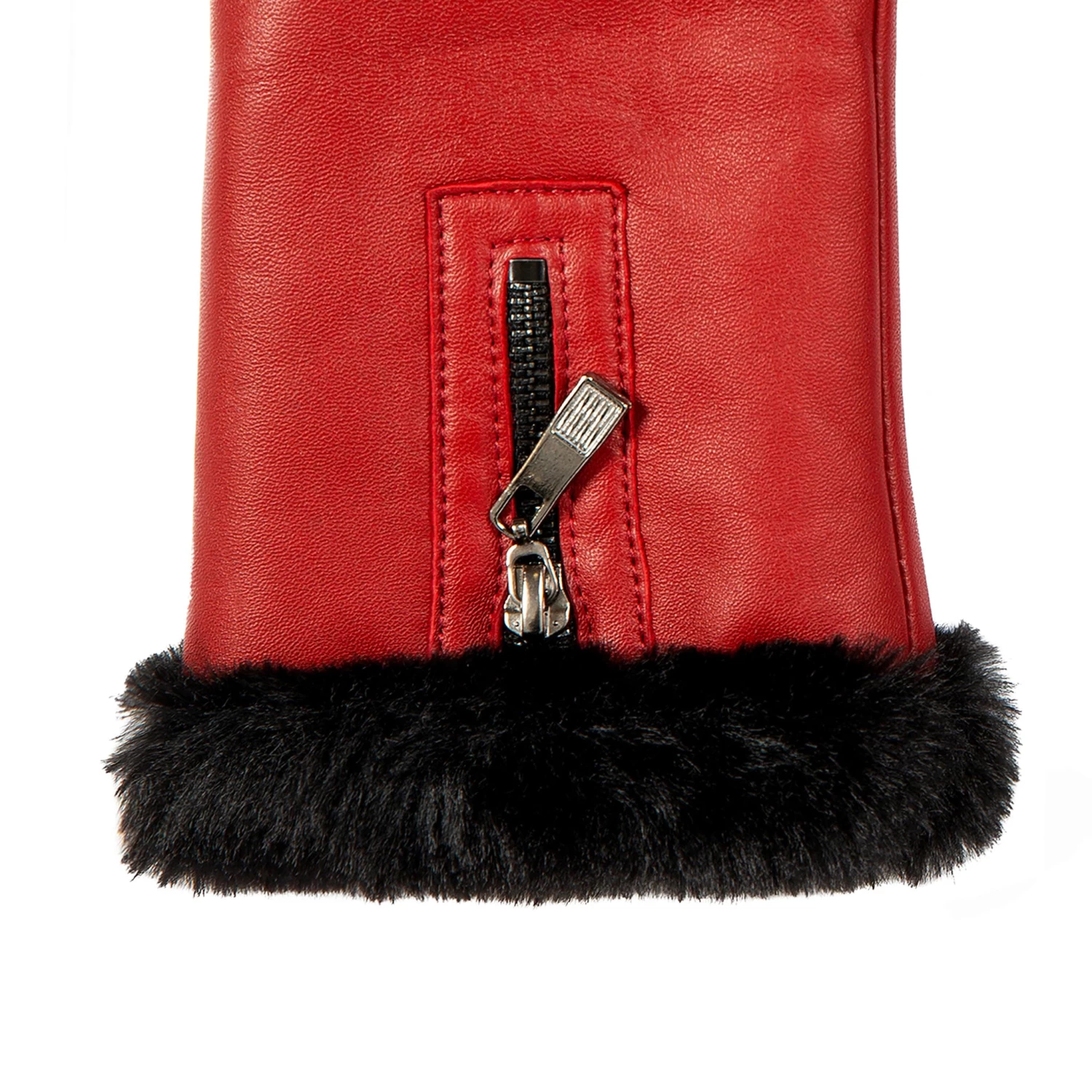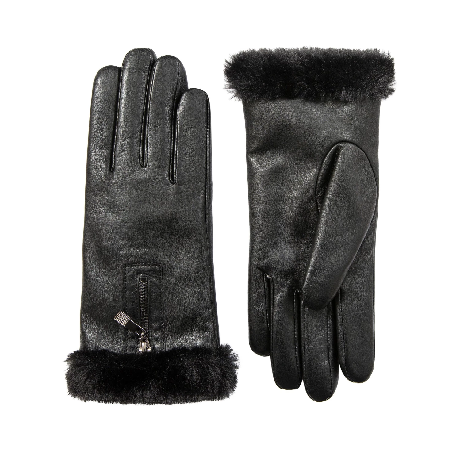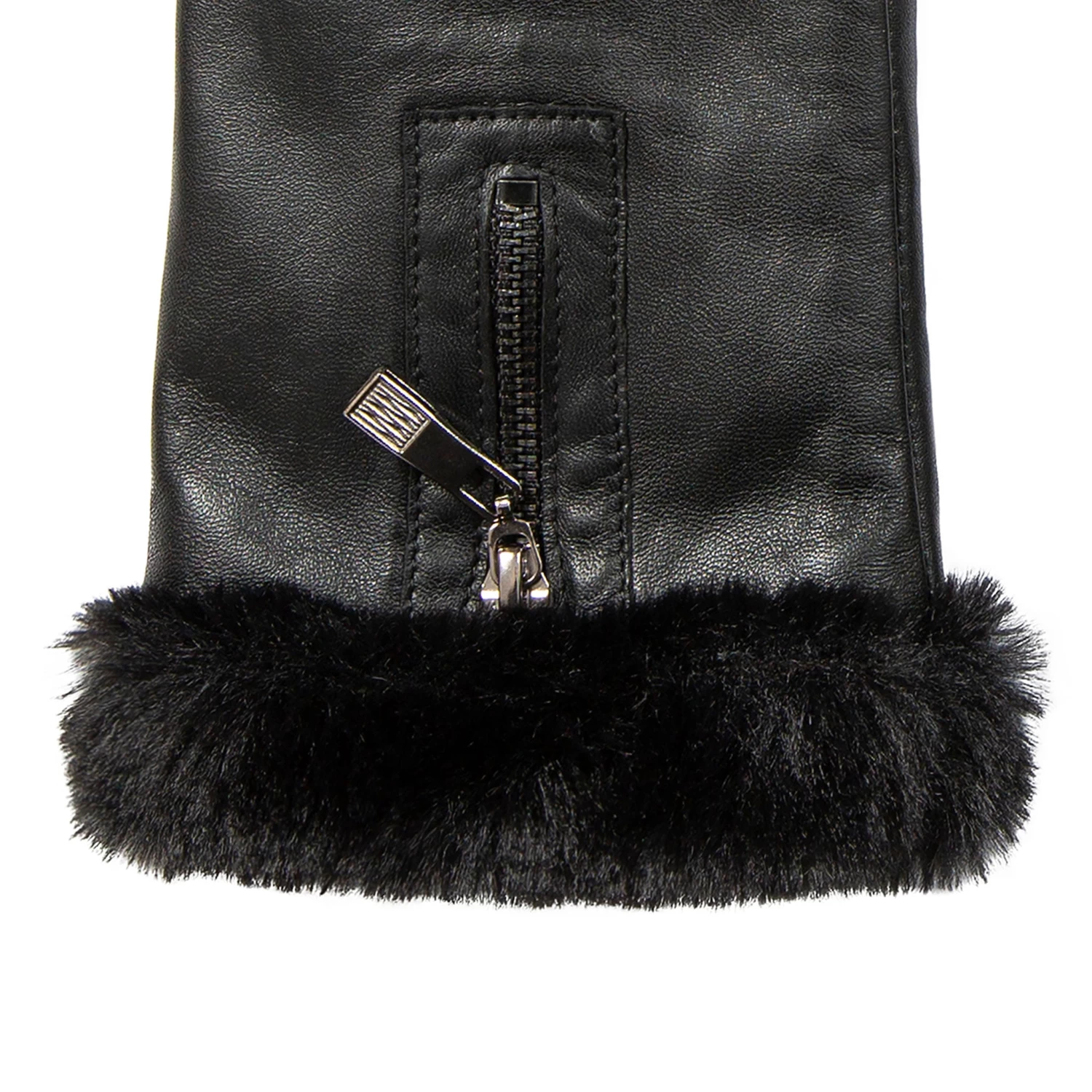 Women’s Touchscreen Faux Fur-Lined Leather Gloves With Zip
