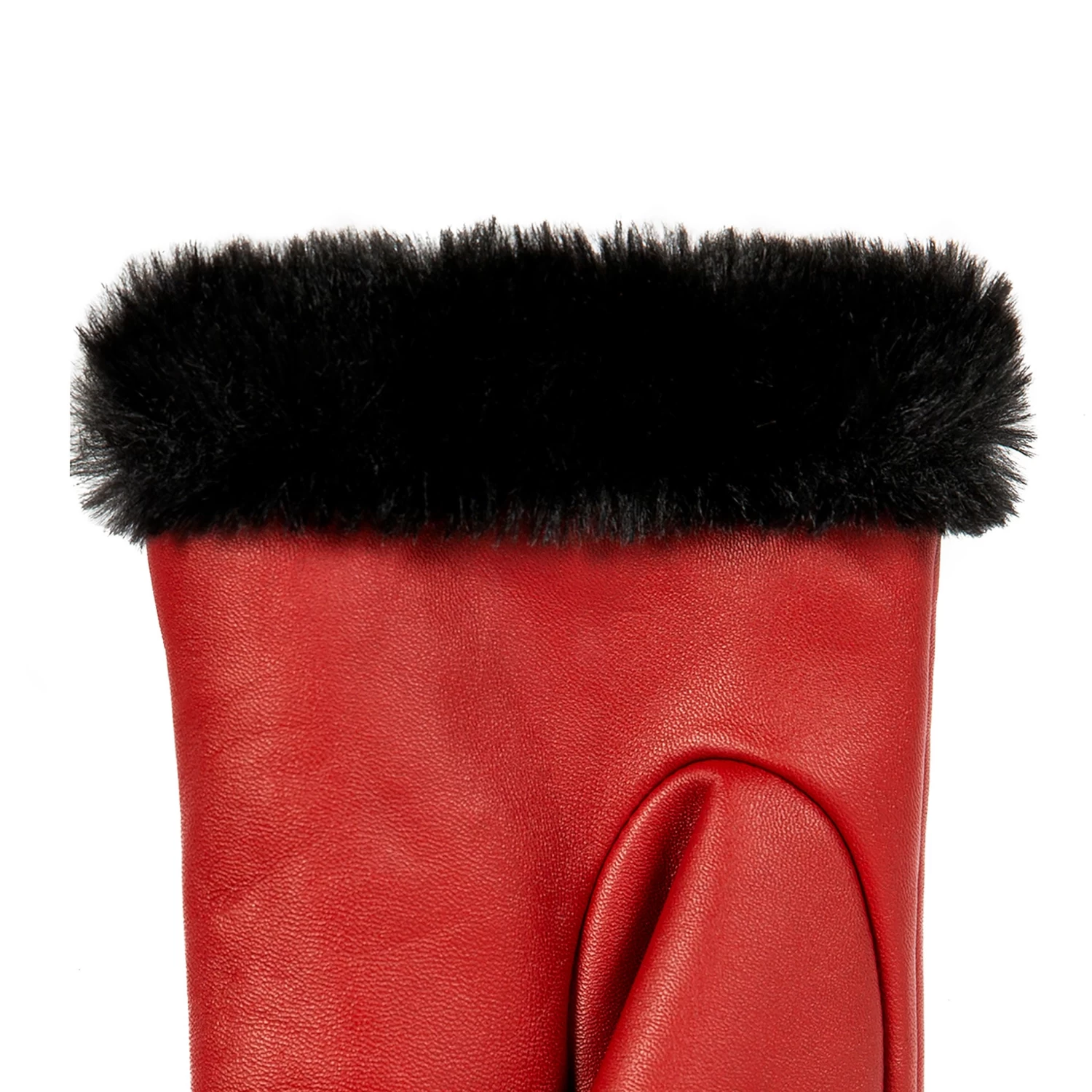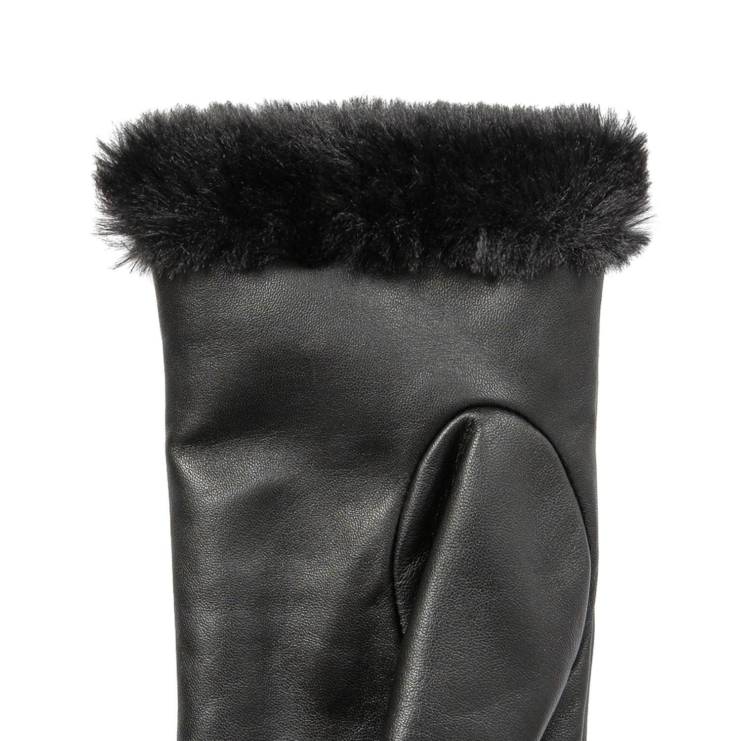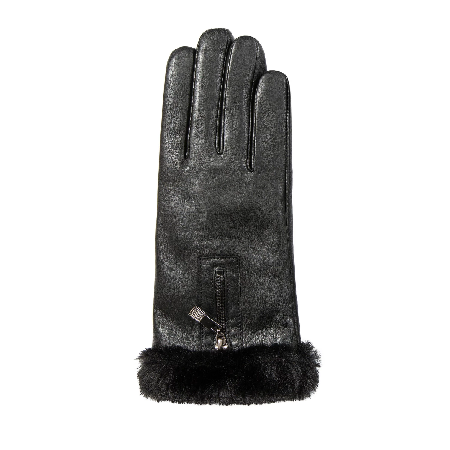 Women’s Touchscreen Faux Fur-Lined Leather Gloves With Zip