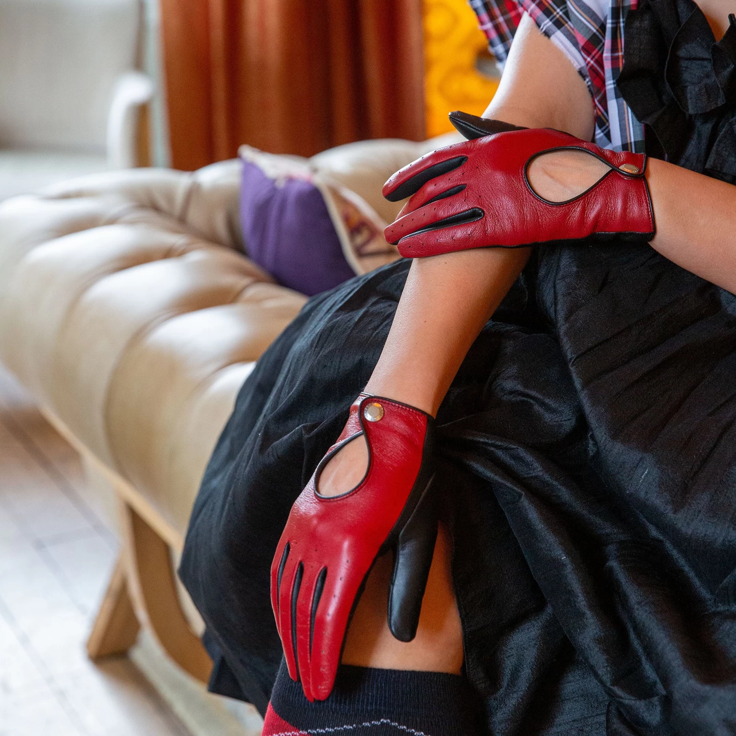 - Classic driving glove styling of cut-out back and perforated detailing