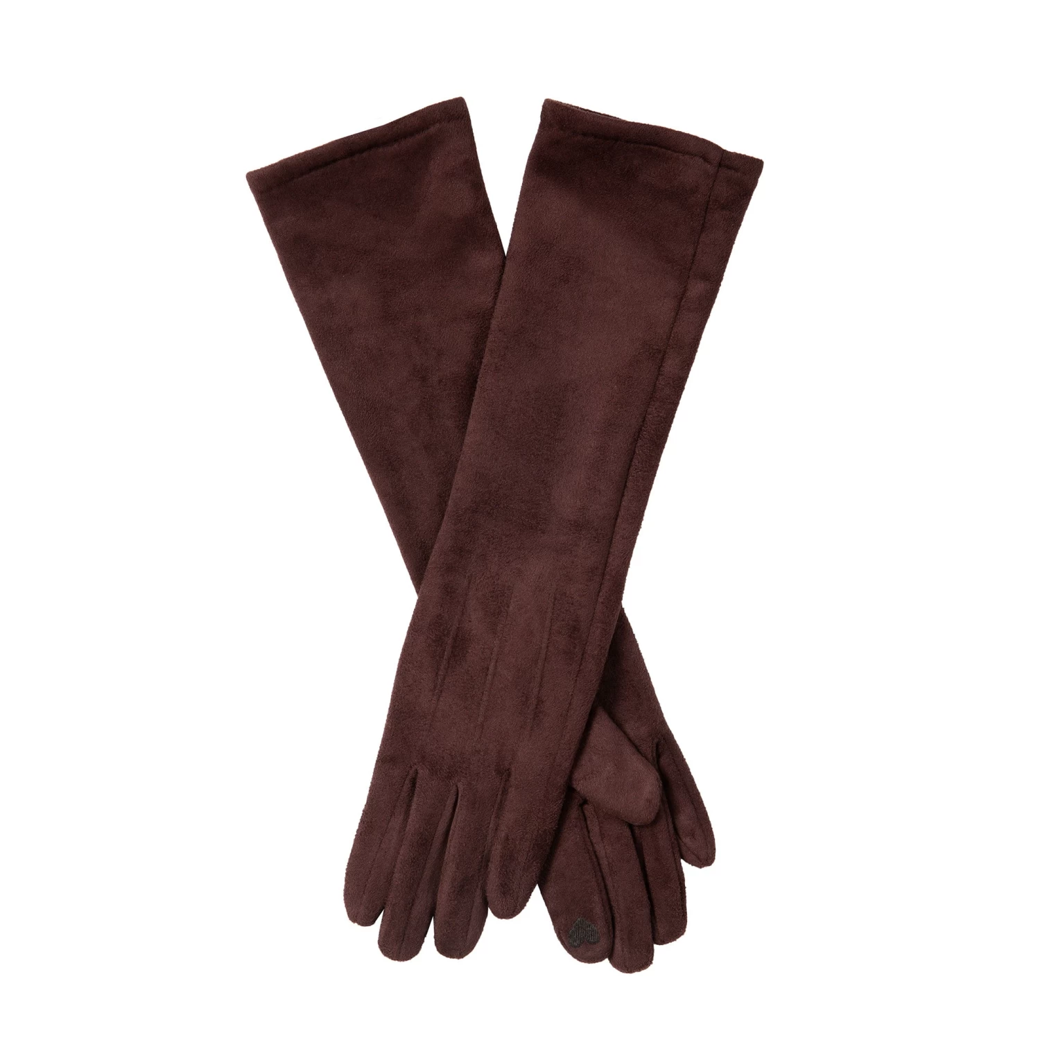 Go from daytime casual to evening elegance with these long faux suede gloves. These versatile gloves extend beyond the wrist and so can be ruched down during the day for a relaxed look and then fully extended to mid-arm length for extra glamour come night-time. Featuring touchscreen technology, you can use your mobile phone when wearing them so you don’t have to compromise your look to answer your phone. And with three decorative points adding design flair, these gloves combine classic style with modern spirit.