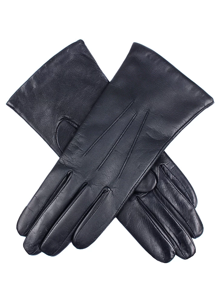 - Three-point decorative stitching on the back of the gloves elongates the look of the hand for a refined appearance
