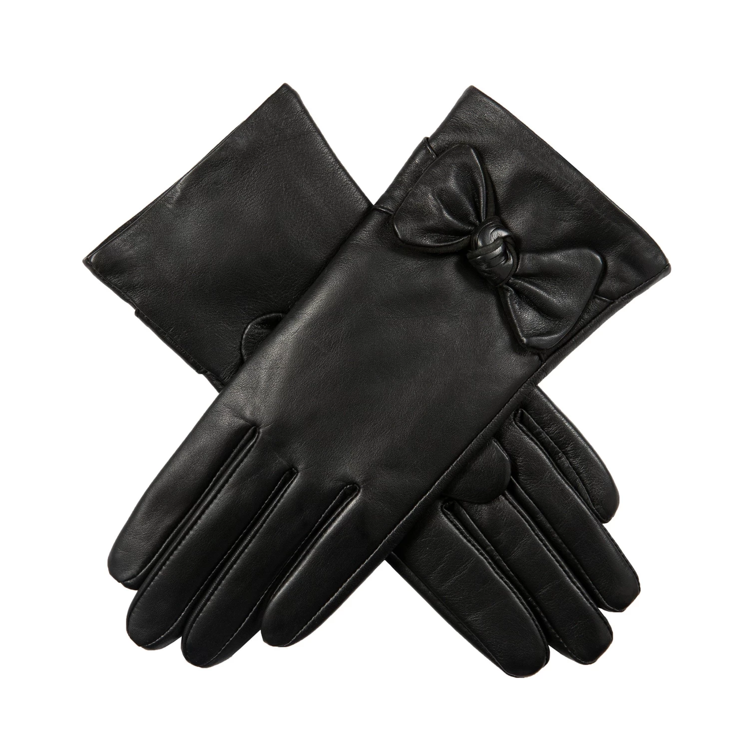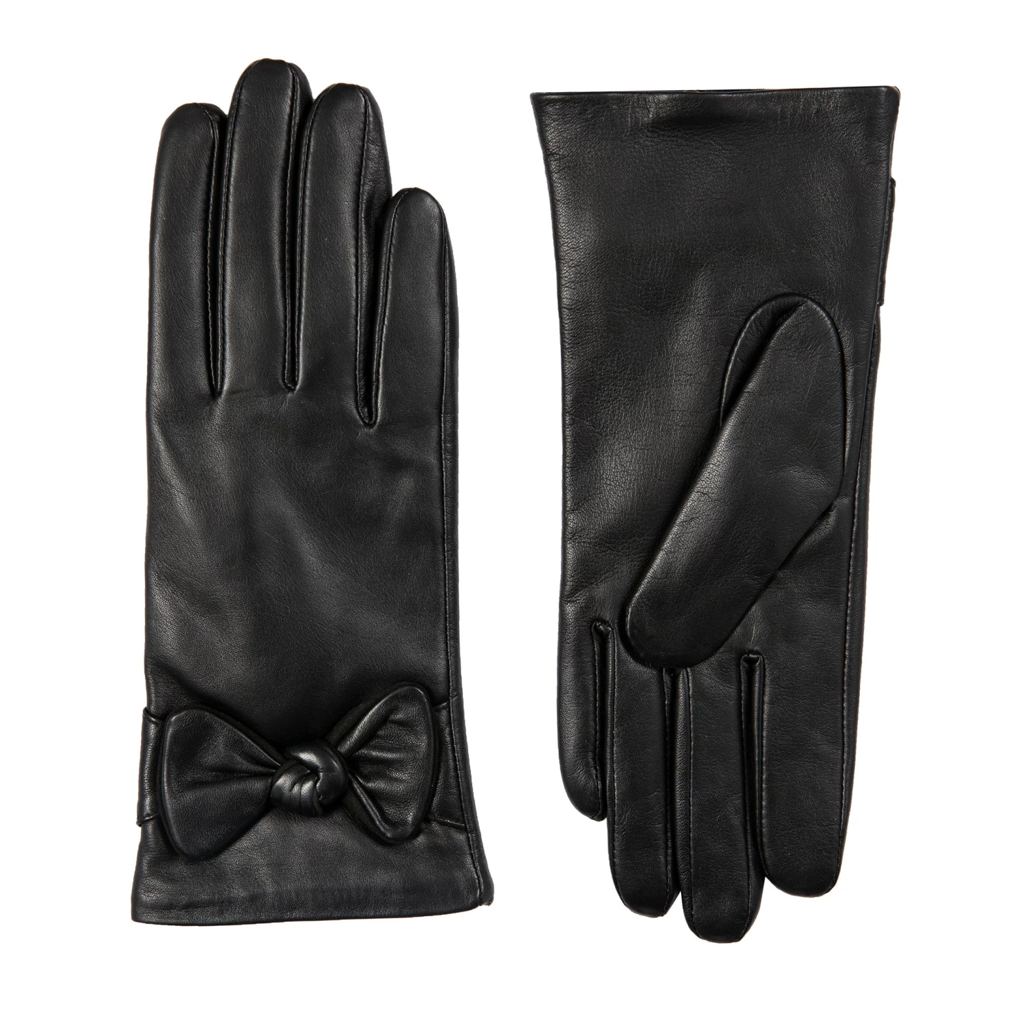 Women’s Touchscreen Wool-Lined Leather Gloves With Bow