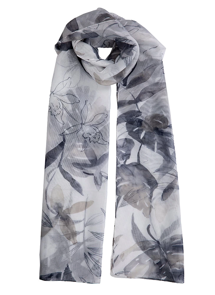 Accessorise the warmer months with our watercolour floral print scarf, made from a beautifully lightweight material.