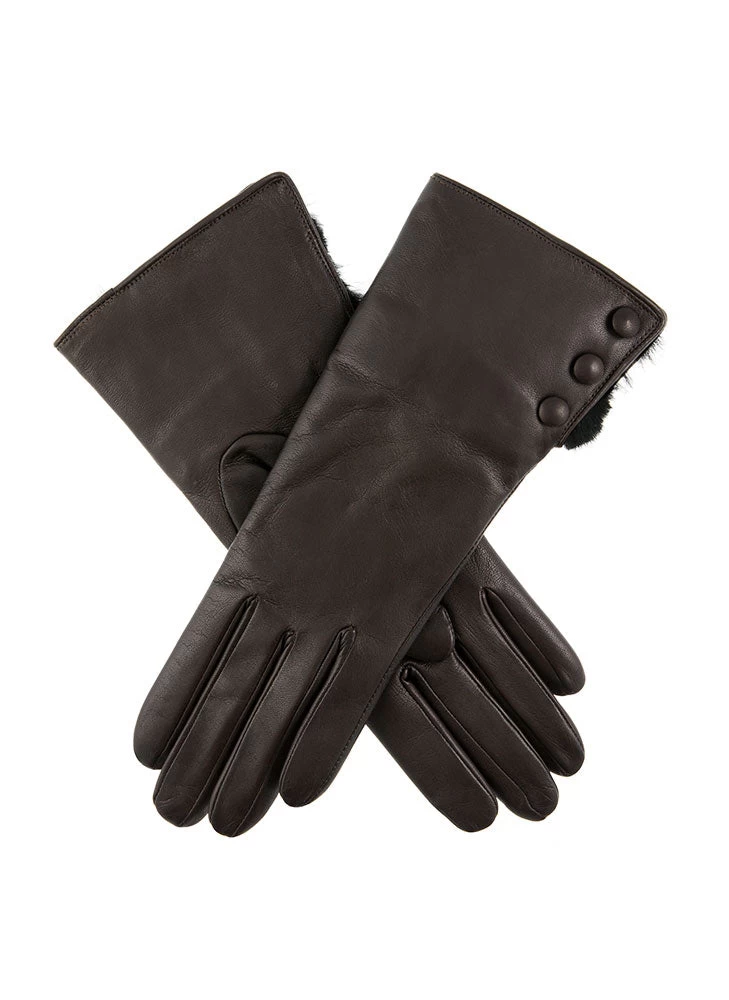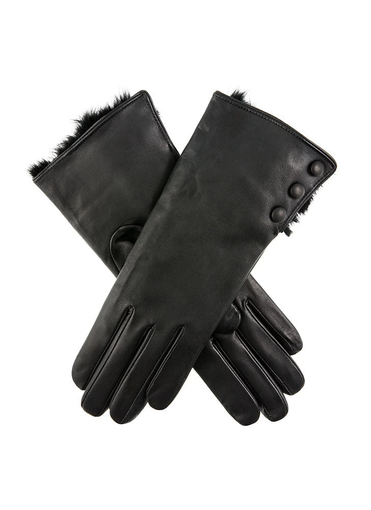 Add a touch of luxury to your accessories with these elegant leather gloves. Silky rabbit fur trims and the knitted wool lining are sure to keep you cosy.