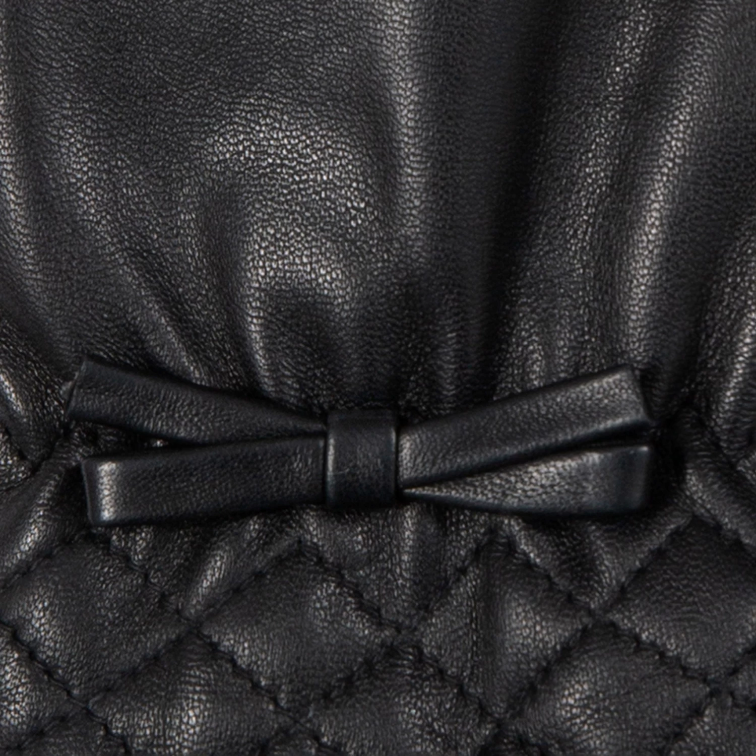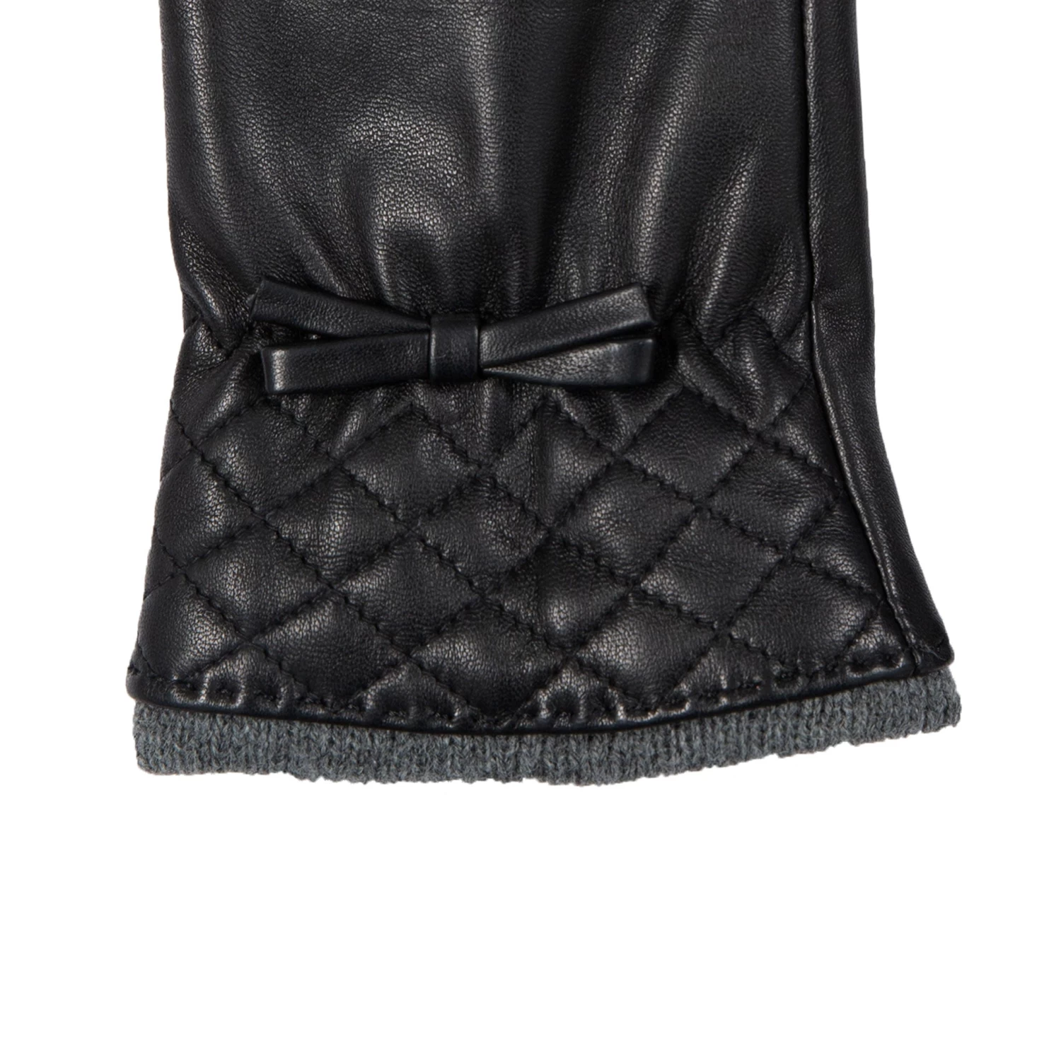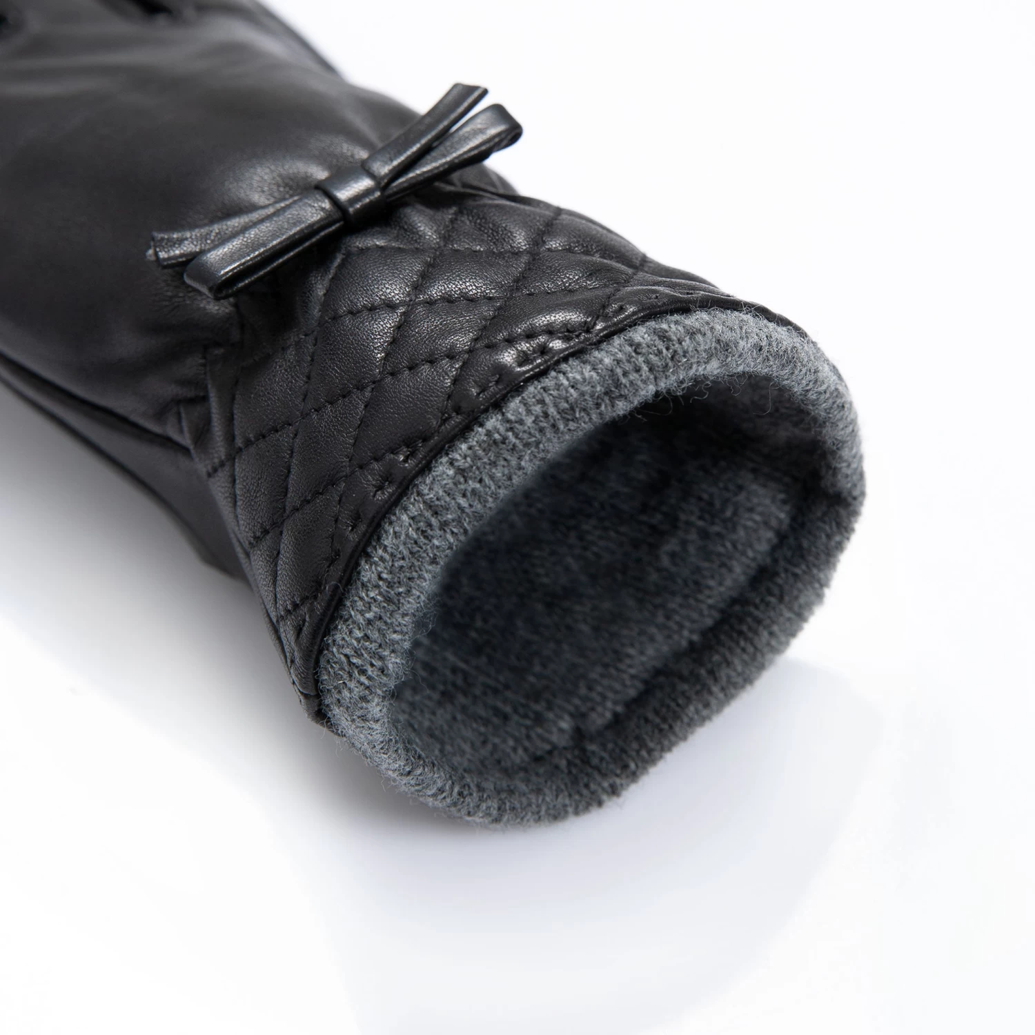 Shake up your style this season with our chic Emmie leather gloves. These premium leather gloves take some classic features and work them into a contemporary and fresh design perfect for today’s modern woman. The outer cuff features a quilted diamond stitch pattern. This timeless touch adds decoration, not bulk, and is topped with a pretty bow. The gloves are lined with high-quality wool, keeping hands cosy warm and protected from cold, winter weather. And this knitted lining extends to create protruding cuffs that help finish the look. Choose from four sophisticated shades – three of which colour contrast with the charcoal-coloured lining for extra drama. A stylish winter glove that adds elegance to your everyday.